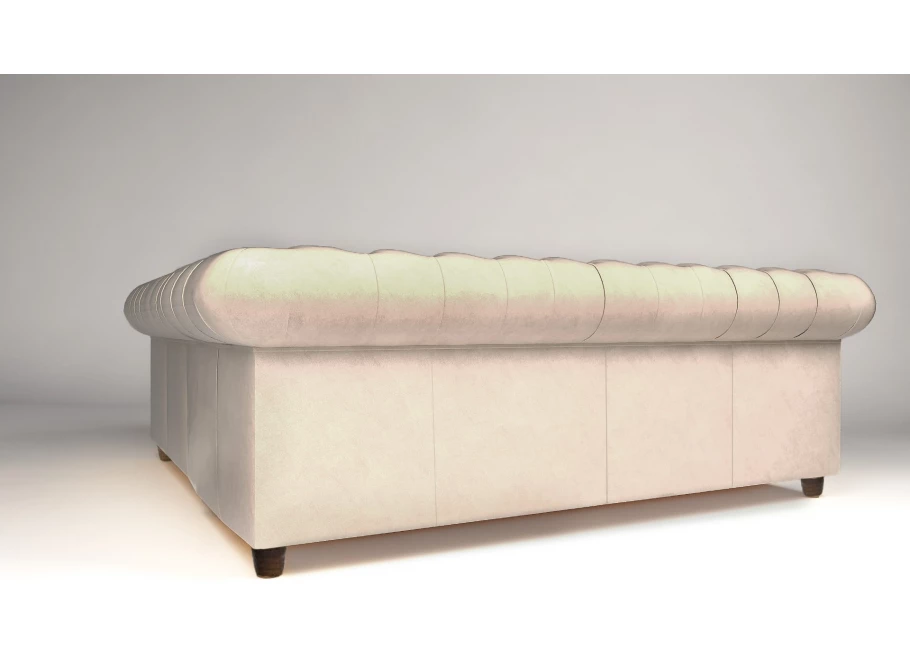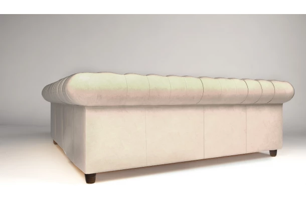 Narożnik chesterfield Solaris został obity fantastyczną tkaniną nie tylko z przodu na oparciu i podłokietnikach, ale również z tyłu - dlatego śmiało możemy postawić go na środku salonu przy okazji sprytnie oddzielając powierzchnie kuchenną od sfery relaksu.