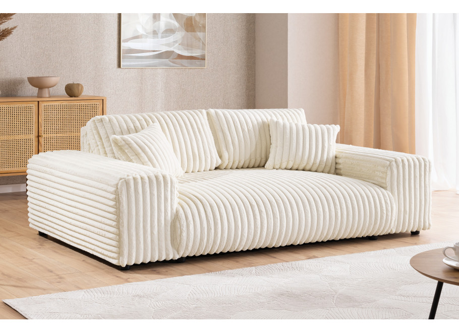Obszerne siedzisko i głębokie, wyściełane poduszki zapewniają wyjątkowy komfort, pozwalając na pełen relaks po długim dniu. Eleganckie linie oraz delikatnie zakrzywione krawędzie nadają jej przytulnego charakteru.