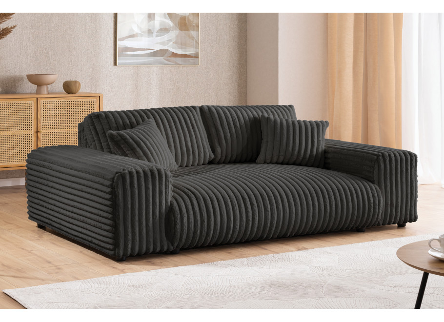 Dzięki kompaktowym rozmiarom świetnie sprawdzi się w mniejszych pomieszczeniach, takich jak salon czy sypialnia, zapewniając komfortowy wypoczynek dla trzech osób.