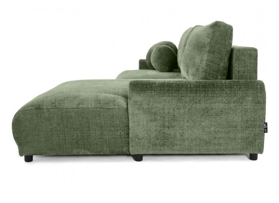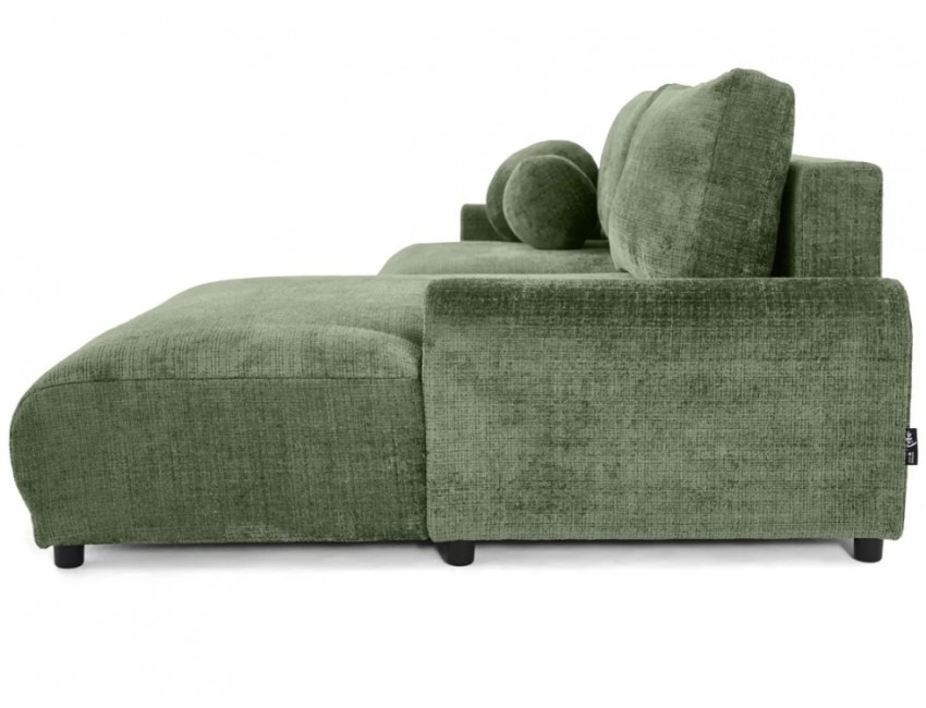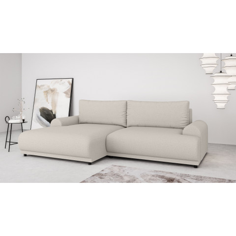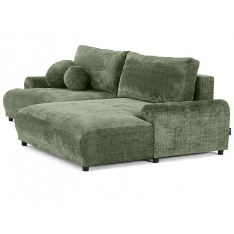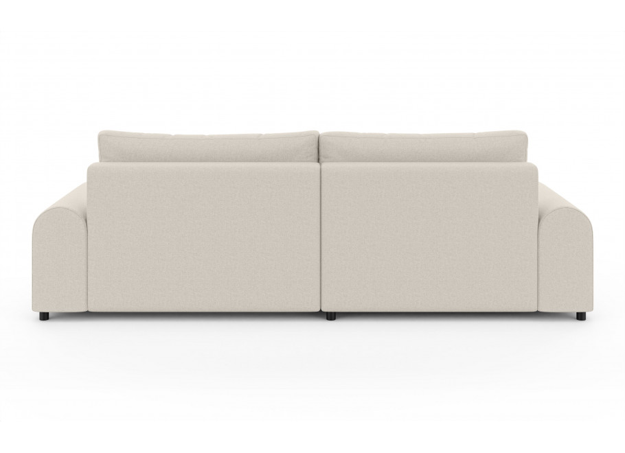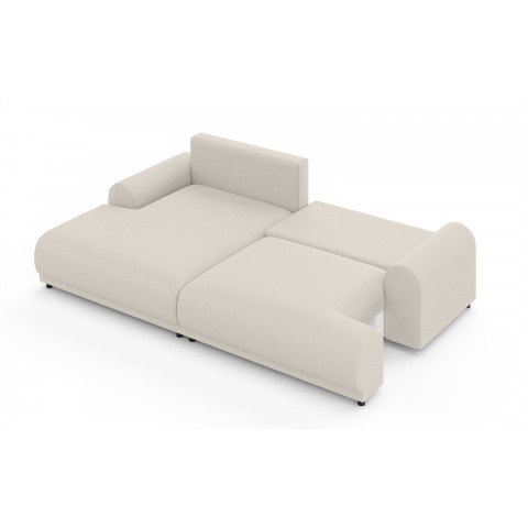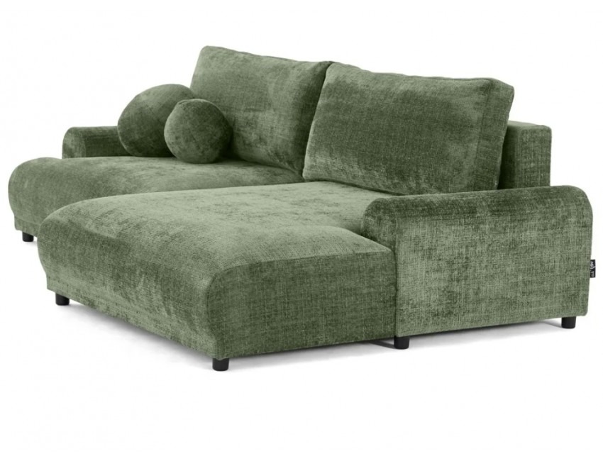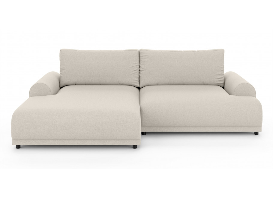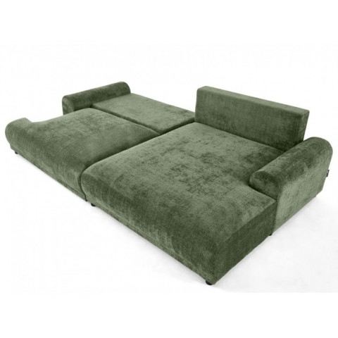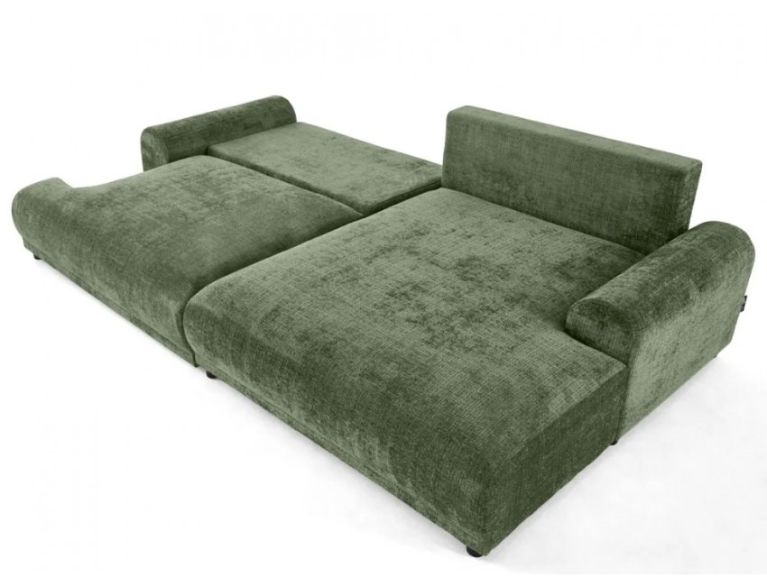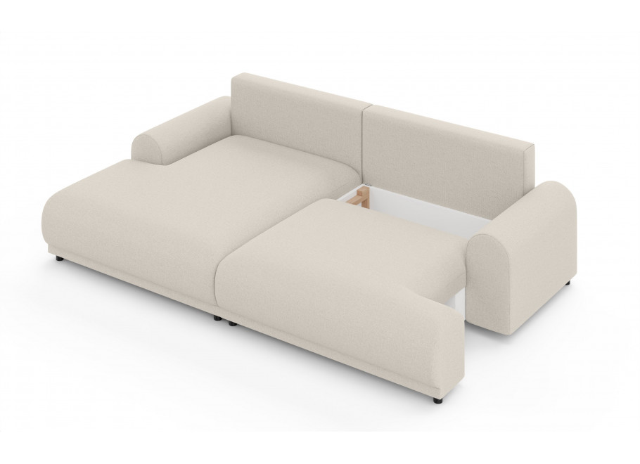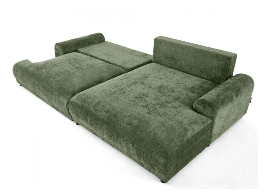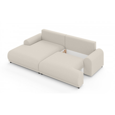 Solidna konstrukcja oparta na płycie wiórowej, MDF, HDF, sklejce oraz litym drewnie gwarantuje stabilność i trwałość przez lata użytkowania. Siedzisko oraz oparcie wypełnione są wysoko elastyczną pianką poliuretanową, która dopasowuje się do kształtu ciała i zapewnia wysoki poziom komfortu, niezależnie od pozycji. Narożnik został wyposażony w praktyczną funkcję spania – wystarczy kilka chwil, aby zmienić go w wygodne łóżko dla gości lub do codziennego wypoczynku. Dodatkowo, wbudowany pojemnik na pościel umożliwia wygodne przechowywanie kołder, poduszek lub innych tekstyliów, co czyni go niezwykle funkcjonalnym rozwiązaniem do nowoczesnych wnętrz.