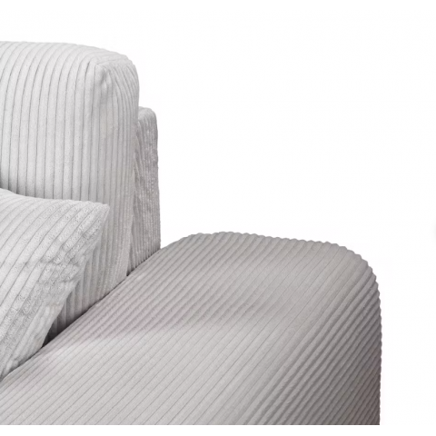Tapicerka wykonana jest z miękkiego, przyjemnego w dotyku materiału o wyrazistej fakturze, który dodaje całości przytulności i elegancji. Zarówno siedzisko, jak i oparcie wypełnione są wysokoelastyczną pianką poliuretanową, która zapewnia doskonałe dopasowanie do ciała i wysoki komfort użytkowania nawet podczas wielogodzinnego wypoczynku. Pianka charakteryzuje się wyjątkową sprężystością i odpornością na odkształcenia, co gwarantuje trwałość i zachowanie idealnego kształtu mebla przez długi czas. Solidny stelaż wykonany został z połączenia płyt wiórowych, MDF, HDF, sklejki oraz elementów z drewna litego – to gwarancja stabilności i wytrzymałości konstrukcji nawet przy intensywnym codziennym użytkowaniu.