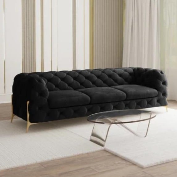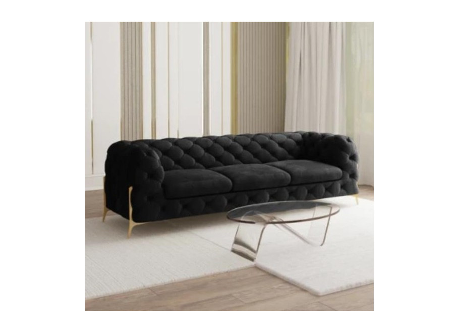 Charakterystyczne dla tej wersji są wysokie nóżki zachodzące na boki, dodające bryle wizualnej lekkości i finezyjnego sznytu. Czarna tapicerka to wybór pewny i efektowny – świetnie eksponuje pikowania i detale wykończenia.