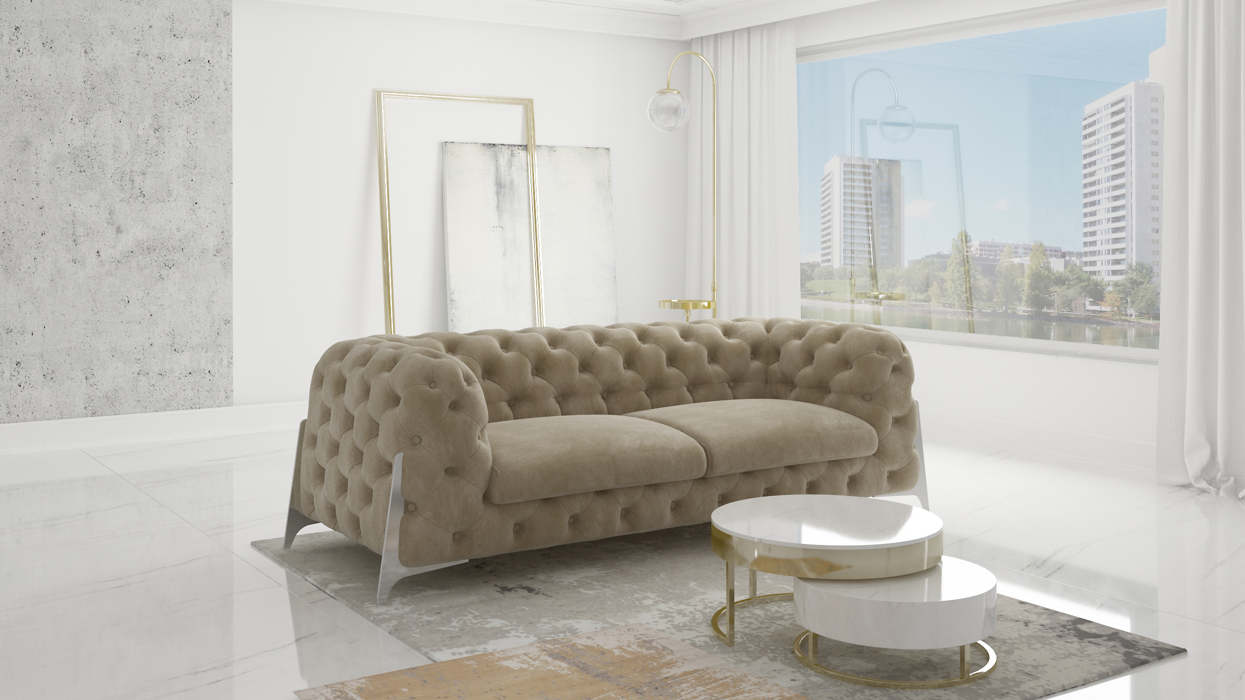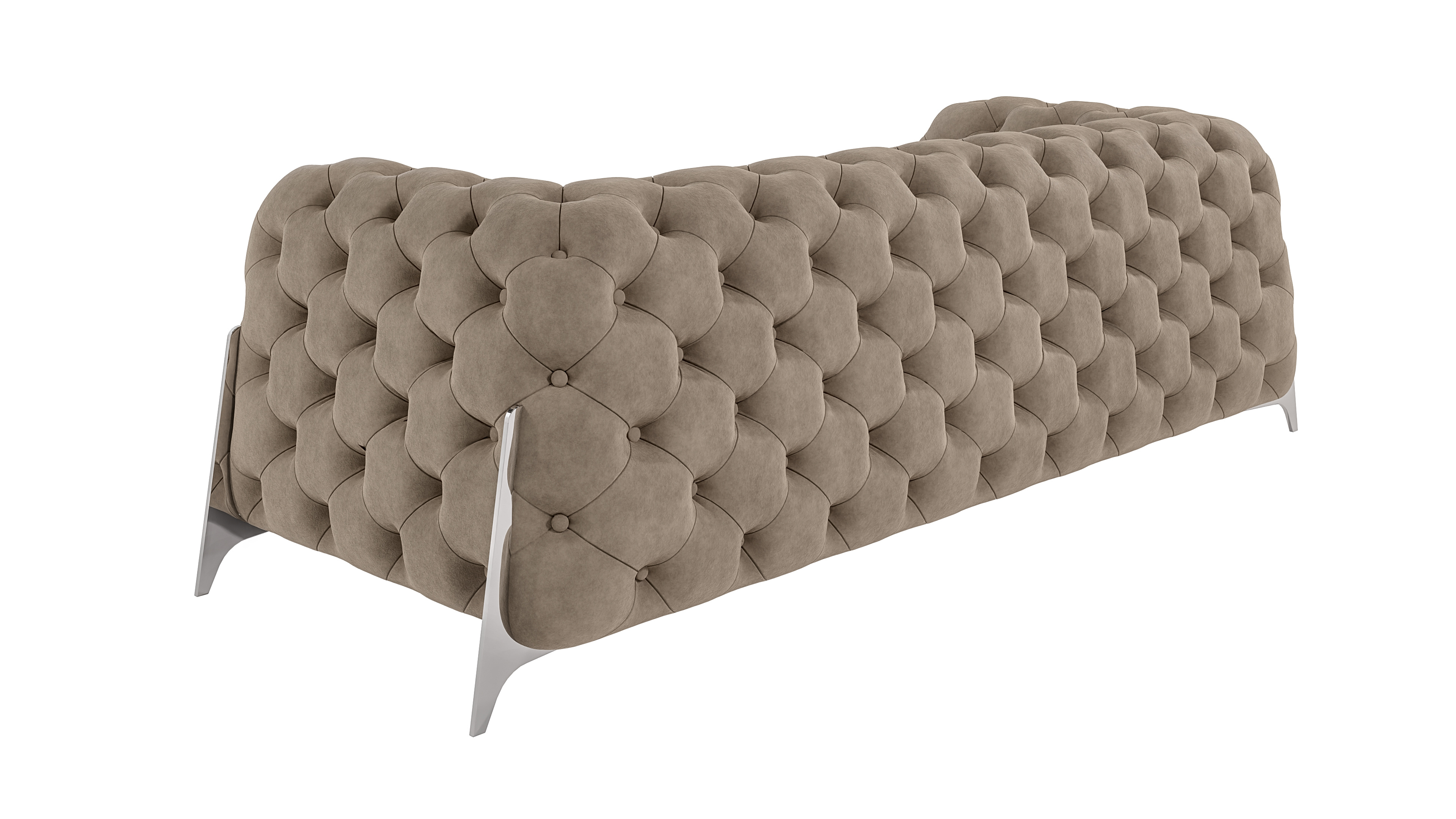 Mebel wyróżnia się przemyślaną formą – eleganckie pikowania, płynne linie i staranne wykończenie są wynikiem ręcznej pracy z dbałością o każdy detal. To model z kolekcji Kalifornia, łączący klasyczne inspiracje z nowoczesną estetyką.