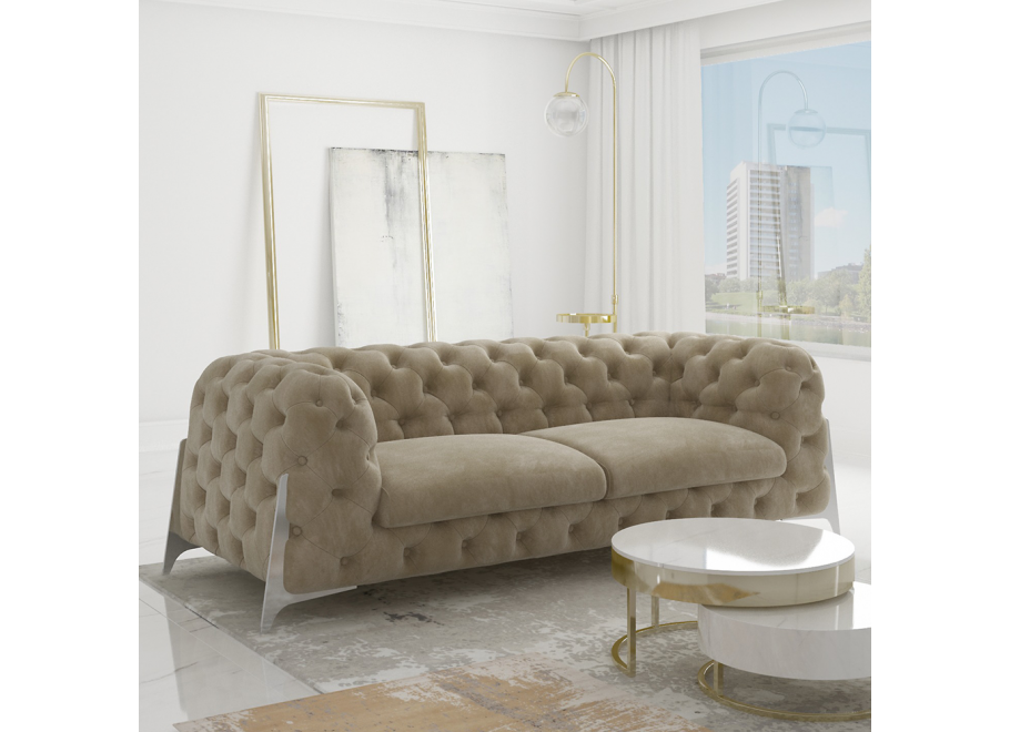 Jasny beż doskonale komponuje się z naturalnymi materiałami, takimi jak drewno, oraz dodatkami w złocie czy czerni. Sofa została stworzona z myślą o długotrwałym użytkowaniu – zachwyca nie tylko na początku, ale również po latach.