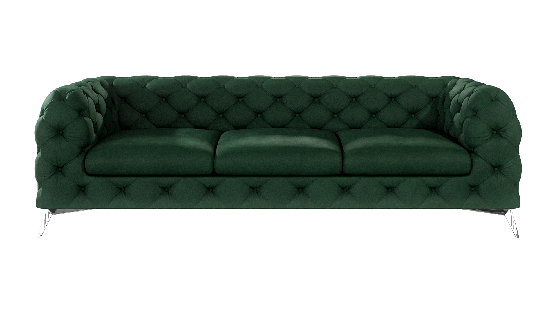 Jeśli chcesz wprowadzić do wnętrza odrobinę luksusu z charakterem, wybierz sofę TEO 3 w kolorze butelkowej zieleni. To odcień, który podkreśla elegancki charakter mebla i sprawia, że staje się on wyrazistym elementem każdego salonu lub biura.