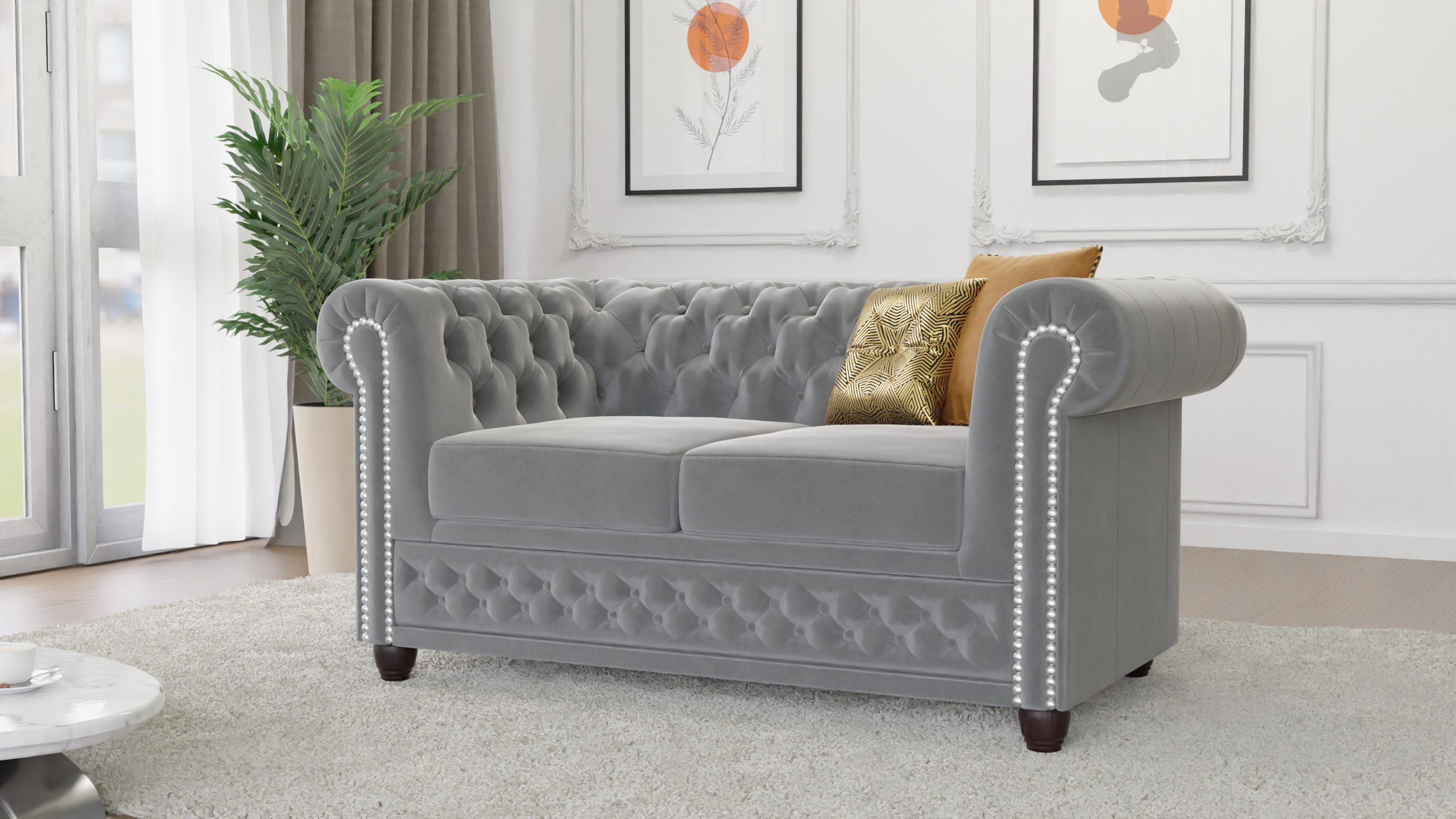 FELIX w wersji szarej, pokryty miękkim welurem, to doskonały wybór dla tych, którzy szukają elegancji w stonowanej, uniwersalnej odsłonie. Charakterystyczne dla stylu Chesterfield pikowania nadają meblowi klasycznego wyglądu, a szary kolor doskonale współgra z nowoczesnym designem.
