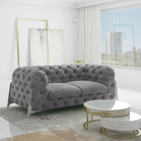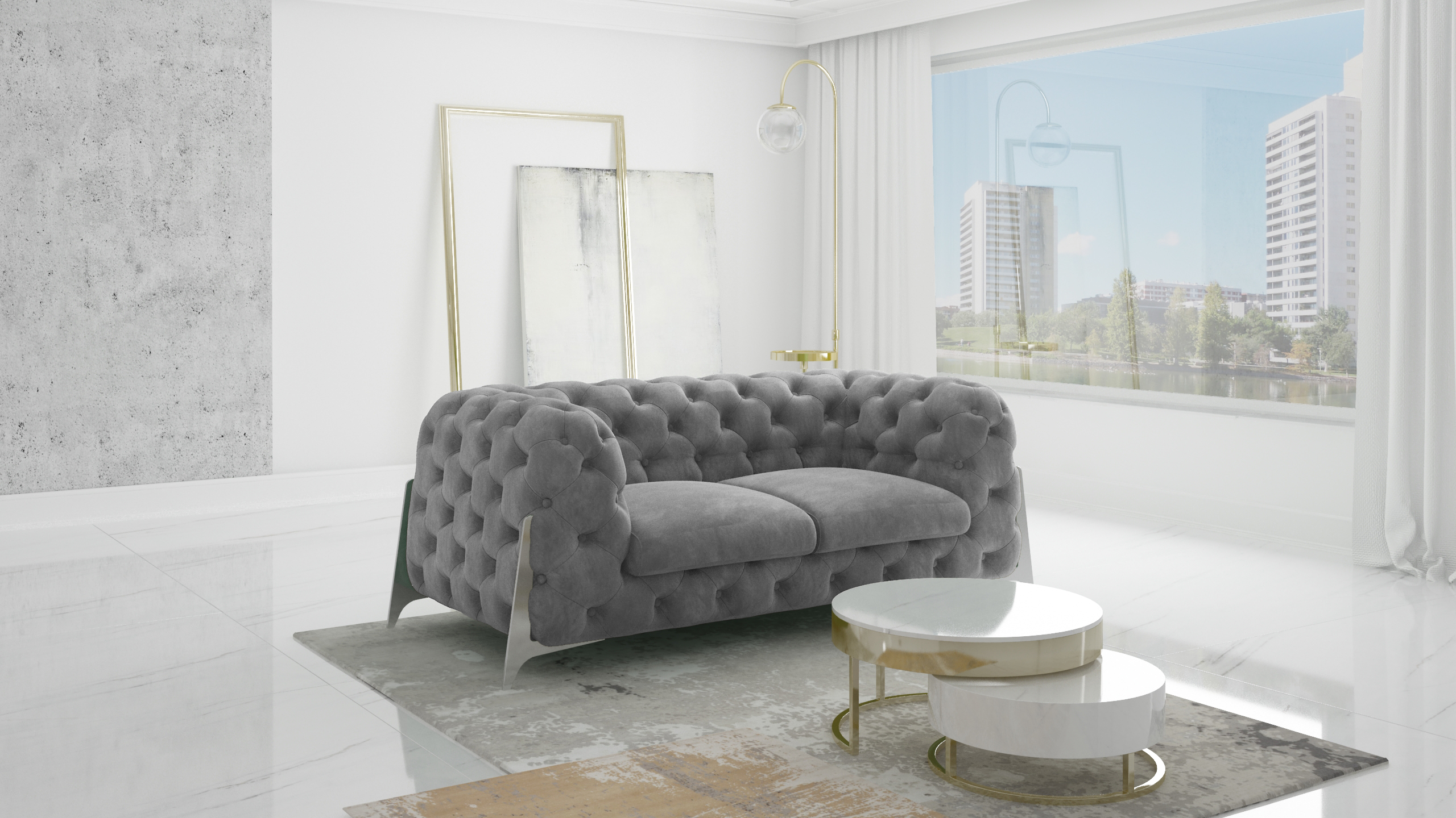 Szara sofa Kalifornia to wszechstronny wybór, który z łatwością dopasuje się do niemal każdego wnętrza – od nowoczesnych po bardziej klasyczne. Neutralna kolorystyka podkreśla elegancję pikowanego wzoru.