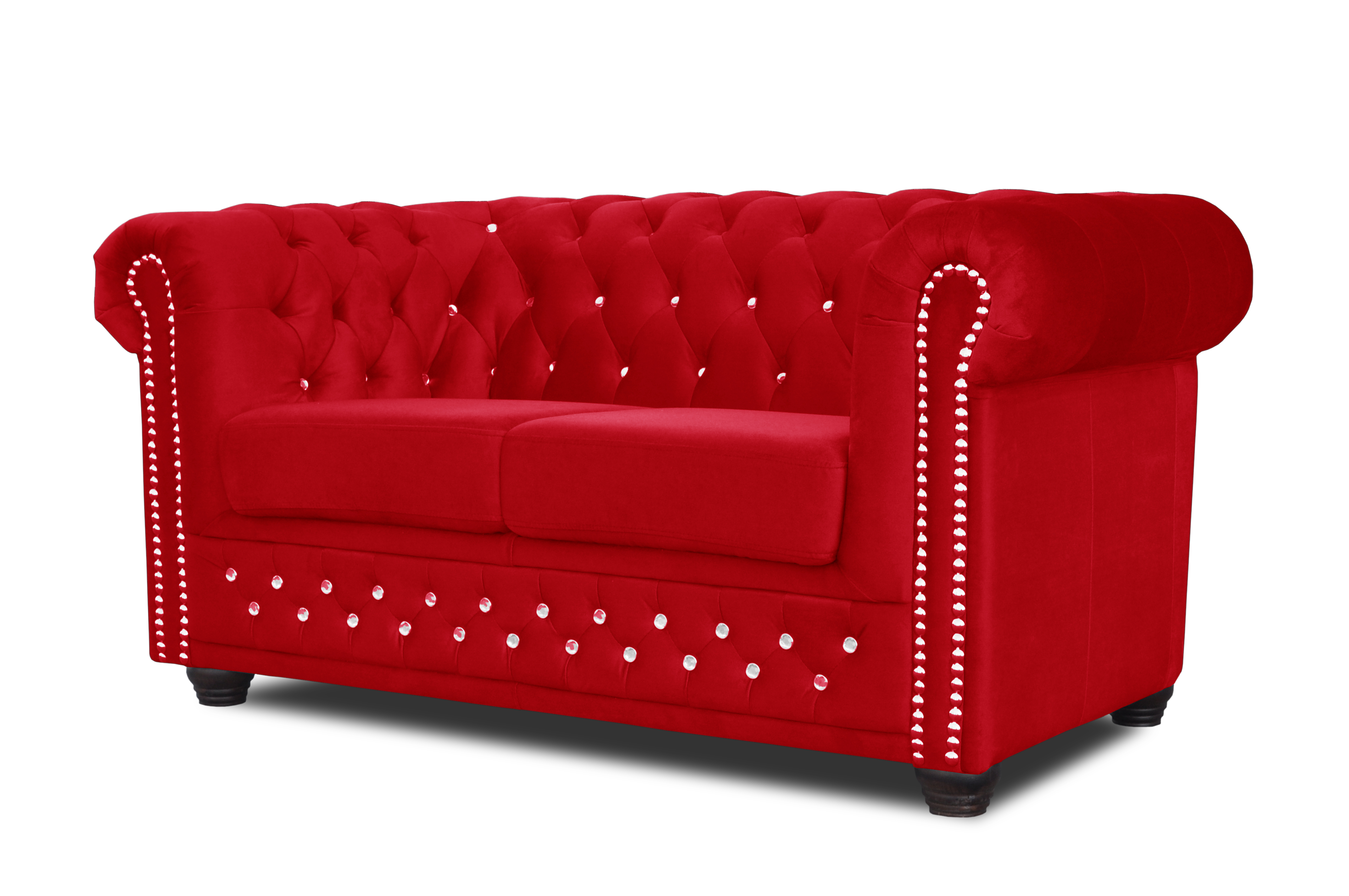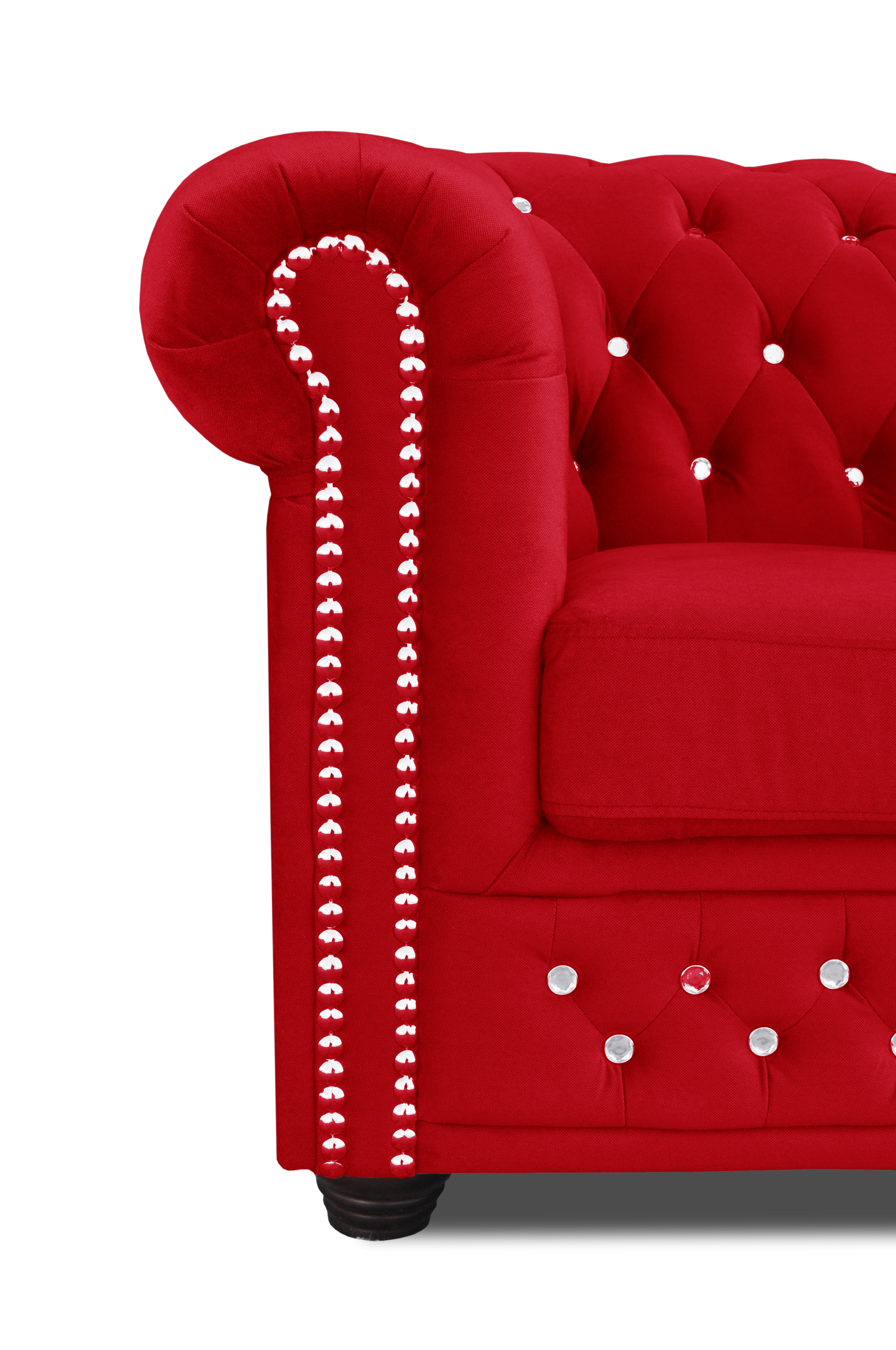 W czerwonym wydaniu sofa FELIX BLINK przyciąga spojrzenia już od progu. To odważny wybór, który świetnie sprawdzi się w przestrzeniach, gdzie liczy się wyrazisty, ale elegancki styl. Czerwień w połączeniu z klasycznym pikowaniem Chesterfield i błyszczącymi kryształkami tworzy spójną, luksusową całość.