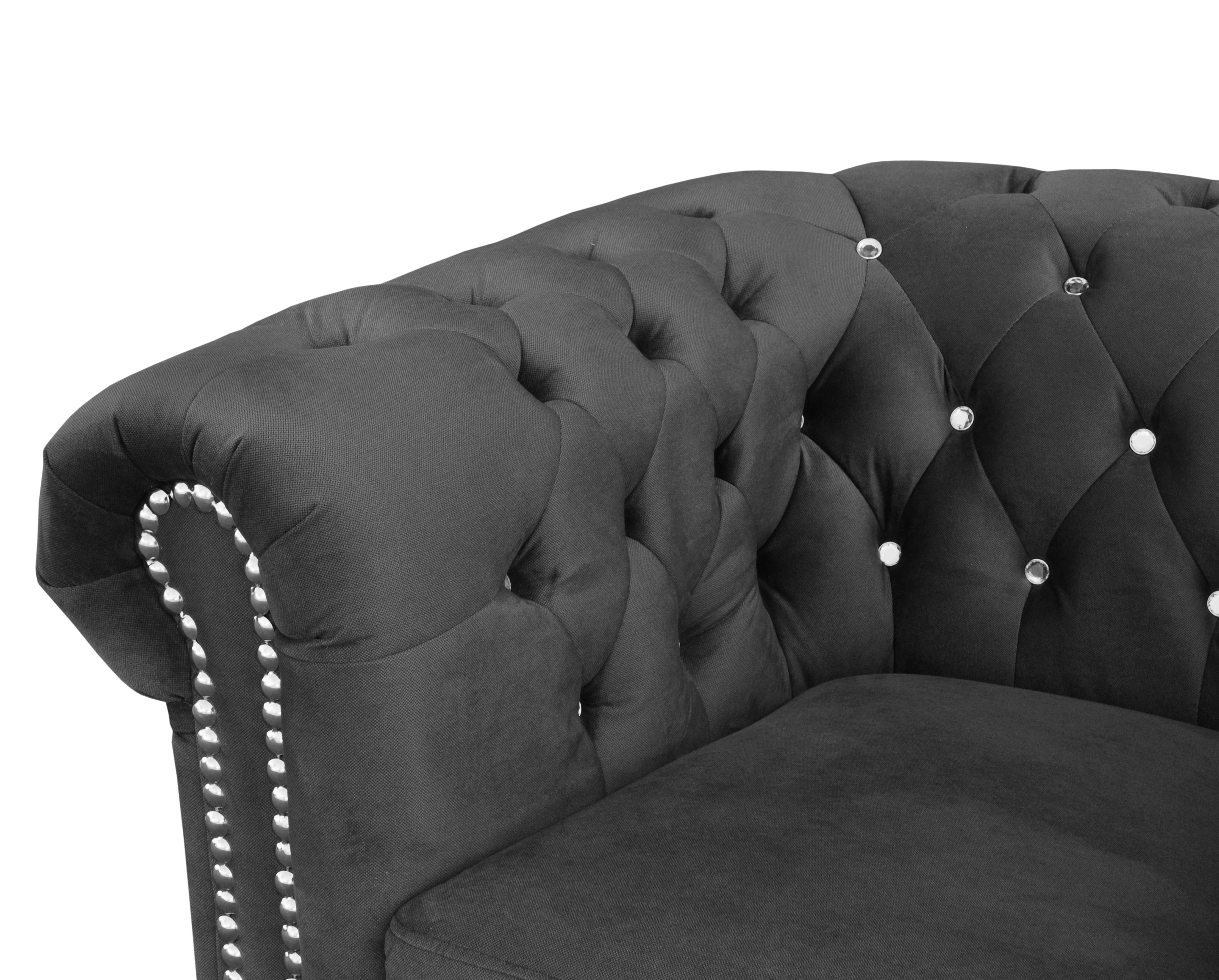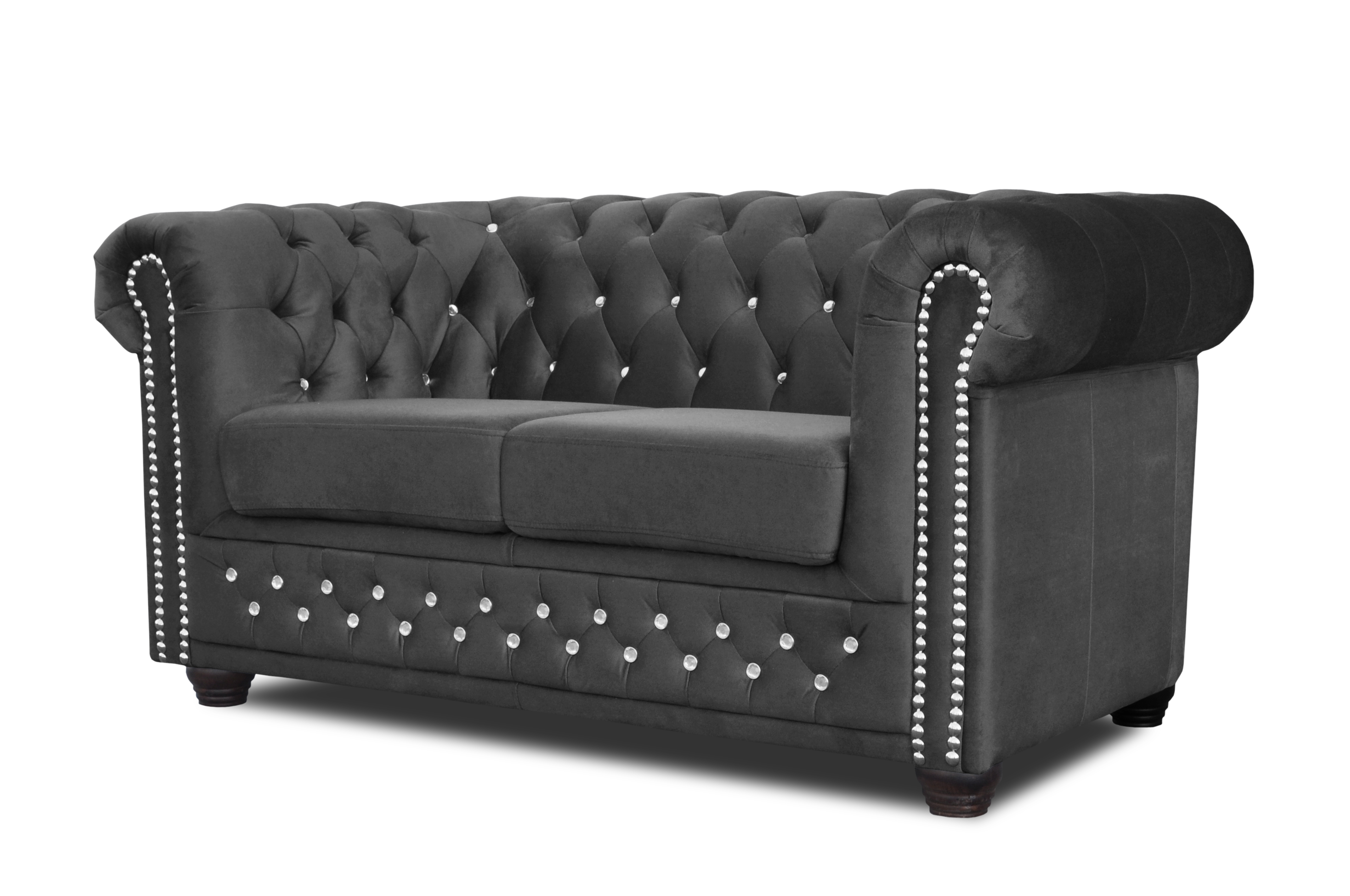 Detale, takie jak pikowania czy zdobienia w postaci delikatnie połyskujących kryształków, dodają sofie wyjątkowego uroku. Konstrukcja z litego drewna i płyt wysokiej jakości odpowiada za jej trwałość, a proporcjonalne wymiary sprawiają, że sofa jest komfortowa, a przy tym dobrze wpisuje się nawet w mniejsze przestrzenie.