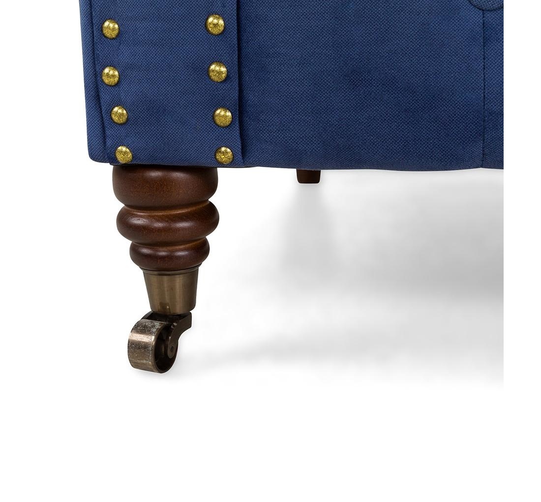 Sofa dwuosobowa VINCENT w intensywnym kobaltowym odcieniu to połączenie klasyki i nowoczesnego podejścia do aranżacji wnętrz. Pikowania na oparciu, bokach i dolnej listwie nawiązują do stylu Chesterfield, wprowadzając do salonu nutę luksusu i angielskiej elegancji. Kolor kobaltowy dodaje energii i sprawia, że mebel staje się mocnym, dekoracyjnym akcentem.