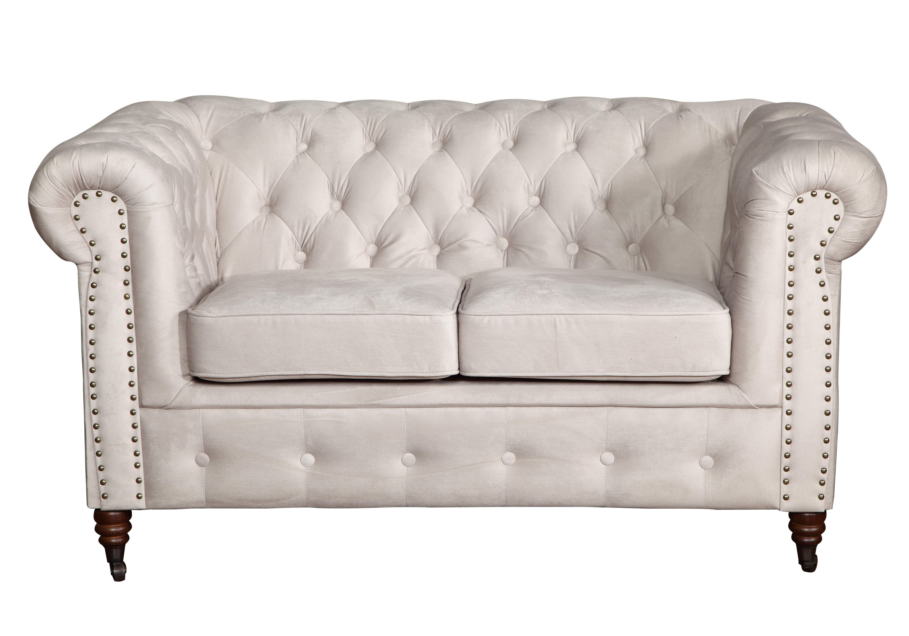 Dwuosobowa sofa VINCENT w kolorze szarym to klasyka w nowoczesnym wydaniu – mebel, który przyciąga uwagę dopracowanymi detalami i ponadczasowym stylem Chesterfield. Charakterystyczne pikowania, widoczne na oparciu, bokach i dolnej listwie, nadają sofie wyrafinowanego charakteru i elegancji. Szara tkanina wnosi do wnętrza spokój, harmonię i uniwersalność – świetnie sprawdzi się w aranżacjach klasycznych, glamour, jak i tych bardziej minimalistycznych.