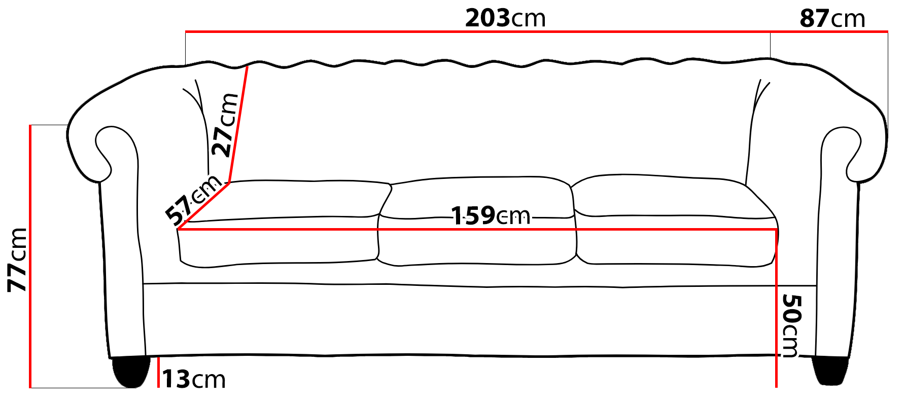 Głębokie siedzisko (57 cm) oraz szerokość 159 cm sprawiają, że sofa świetnie sprawdza się zarówno podczas spotkań towarzyskich, jak i spokojnych chwil w pojedynkę. Podłokietniki i wyprofilowane oparcie dodają elegancji, a jednocześnie zapewniają wygodę.