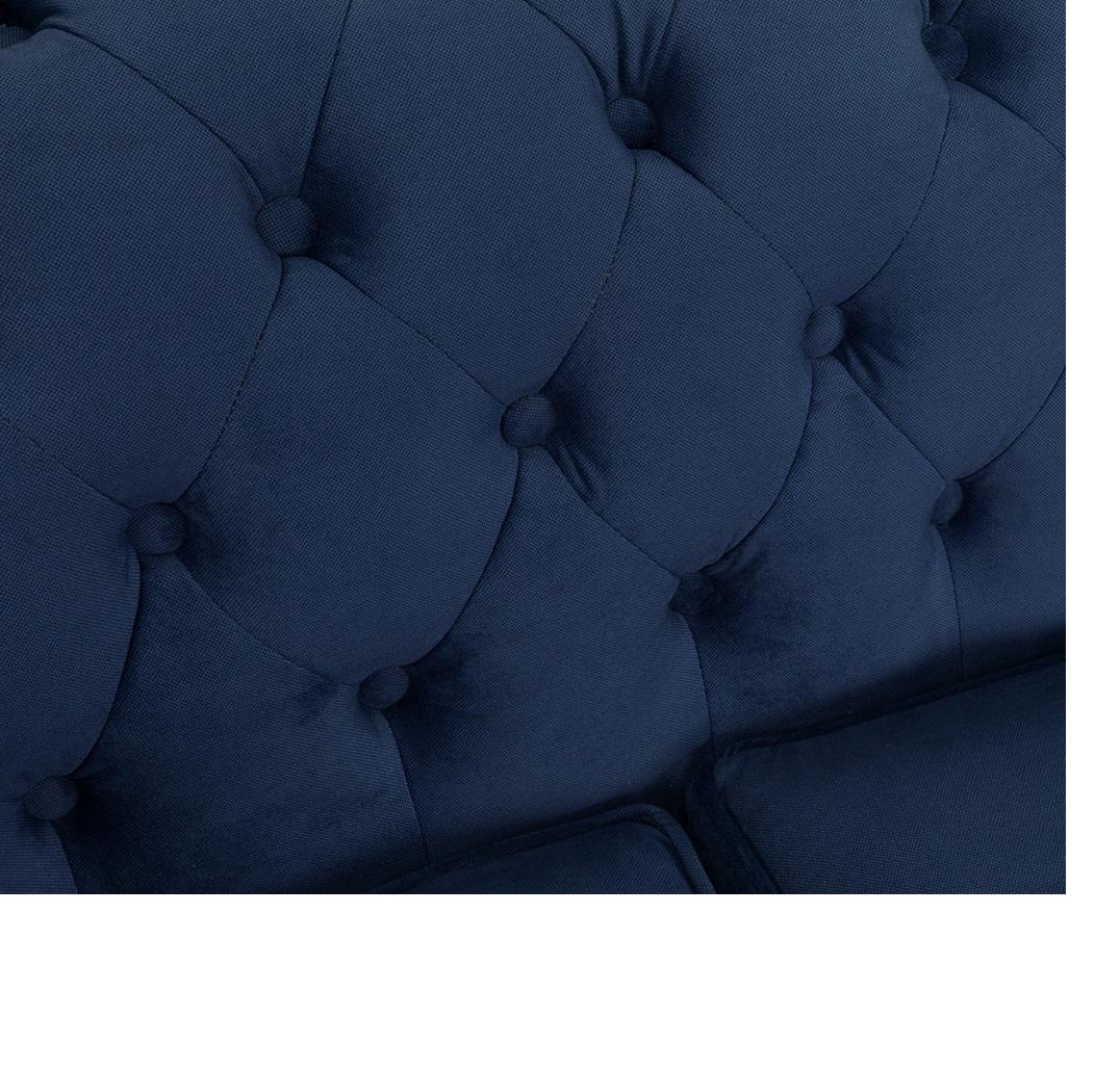 Sofa VINCENT w kolorze kobaltowym to propozycja dla osób, które chcą połączyć klasyczny styl Chesterfield z odważnym akcentem kolorystycznym. Intensywny niebieski odcień wnosi energię do wnętrza, a starannie wykonane pikowania na oparciu, bokach i froncie mebla podkreślają jego luksusowy charakter. To wyjątkowe połączenie klasy i nowoczesności.