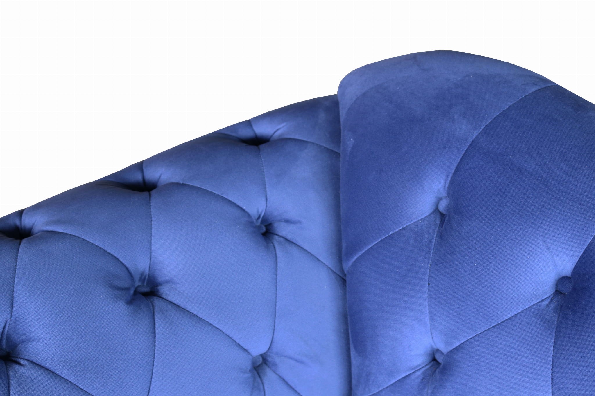 Sofa trzyosobowa Chesterfield PARIS w kolorze kobaltowym to połączenie klasycznej estetyki z praktycznym komfortem. Charakterystyczny dla stylu Chesterfield wzór głębokiego pikowania nadaje jej wyrazisty wygląd, a intensywny kobaltowy odcień tkaniny przyciąga wzrok i dodaje wnętrzu nowoczesnej świeżości. To propozycja dla tych, którzy cenią klasykę, ale nie boją się odważnych barw.
