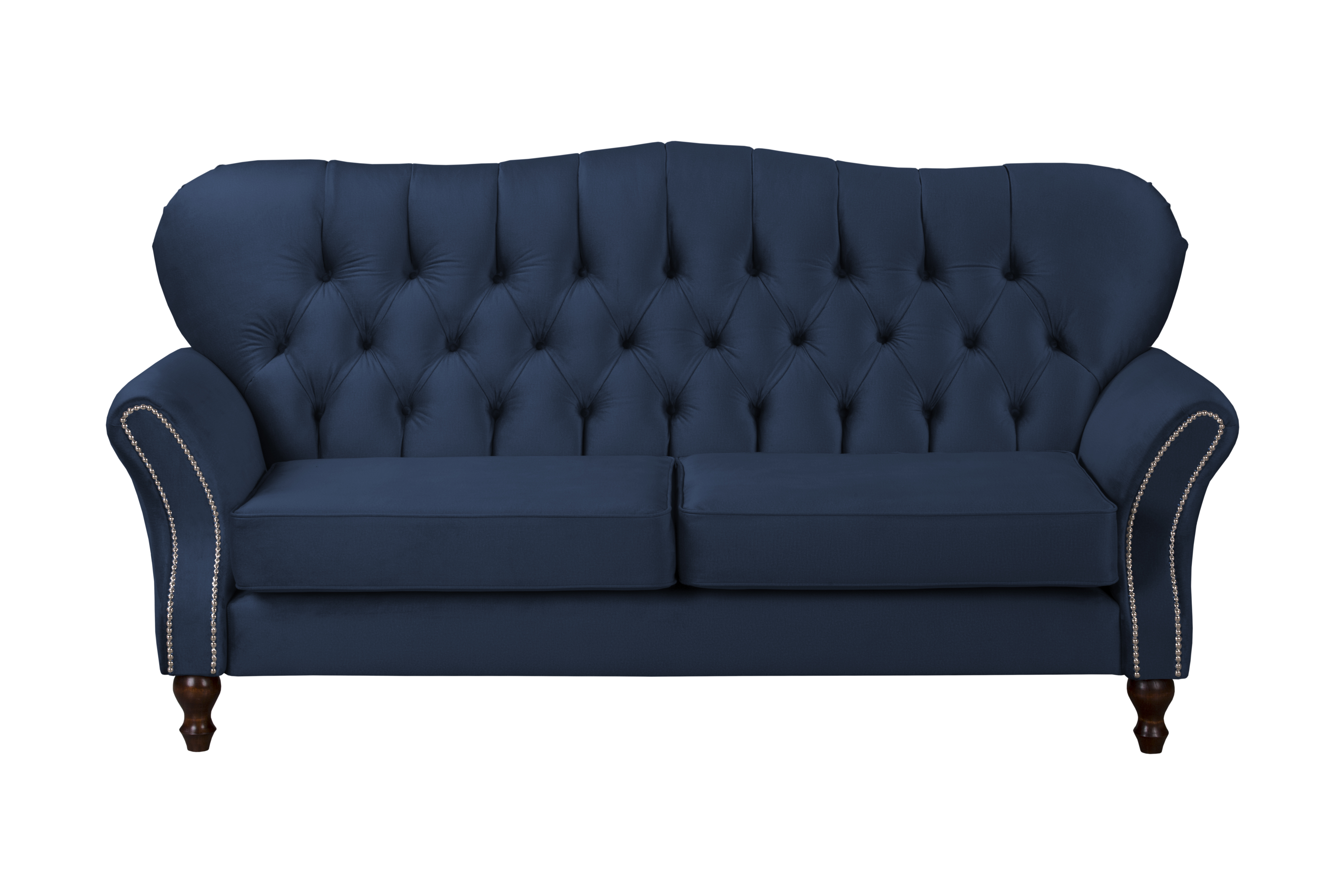 Granatowa sofa BOGOTA to wyrazisty element wnętrza, który przyciąga wzrok i nadaje przestrzeni wyjątkowego charakteru. Jej forma inspirowana stylem Chesterfield to ukłon w stronę klasyki, połączonej z funkcjonalnością współczesnych mebli.
