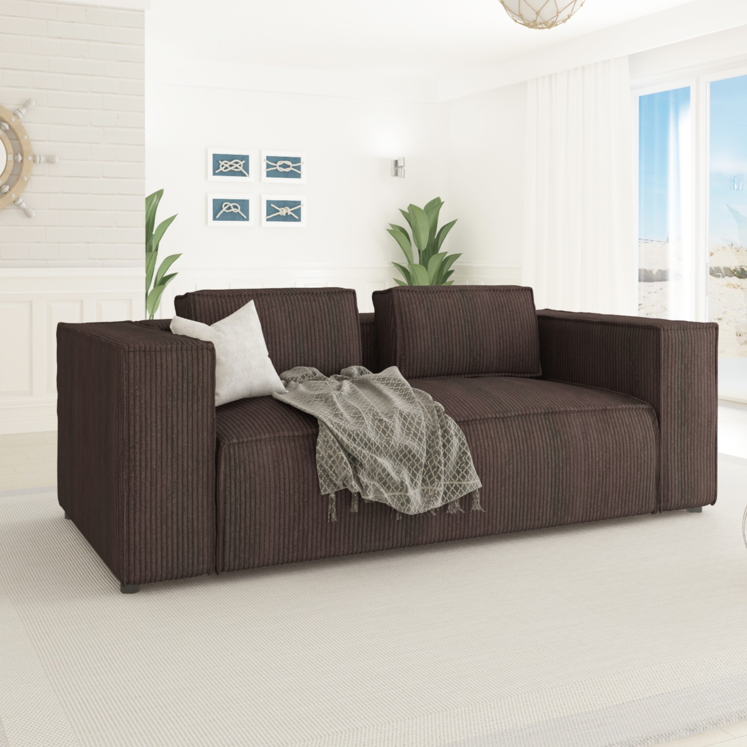 Wersja sofy Esmo w ciemnym brązie to stylowa propozycja dla tych, którzy poszukują mebla w głębokim, ciepłym odcieniu. Ten kolor wprowadza do wnętrza przytulność i równowagę, doskonale wpisując się w nowoczesne, ale też klasyczne aranżacje.