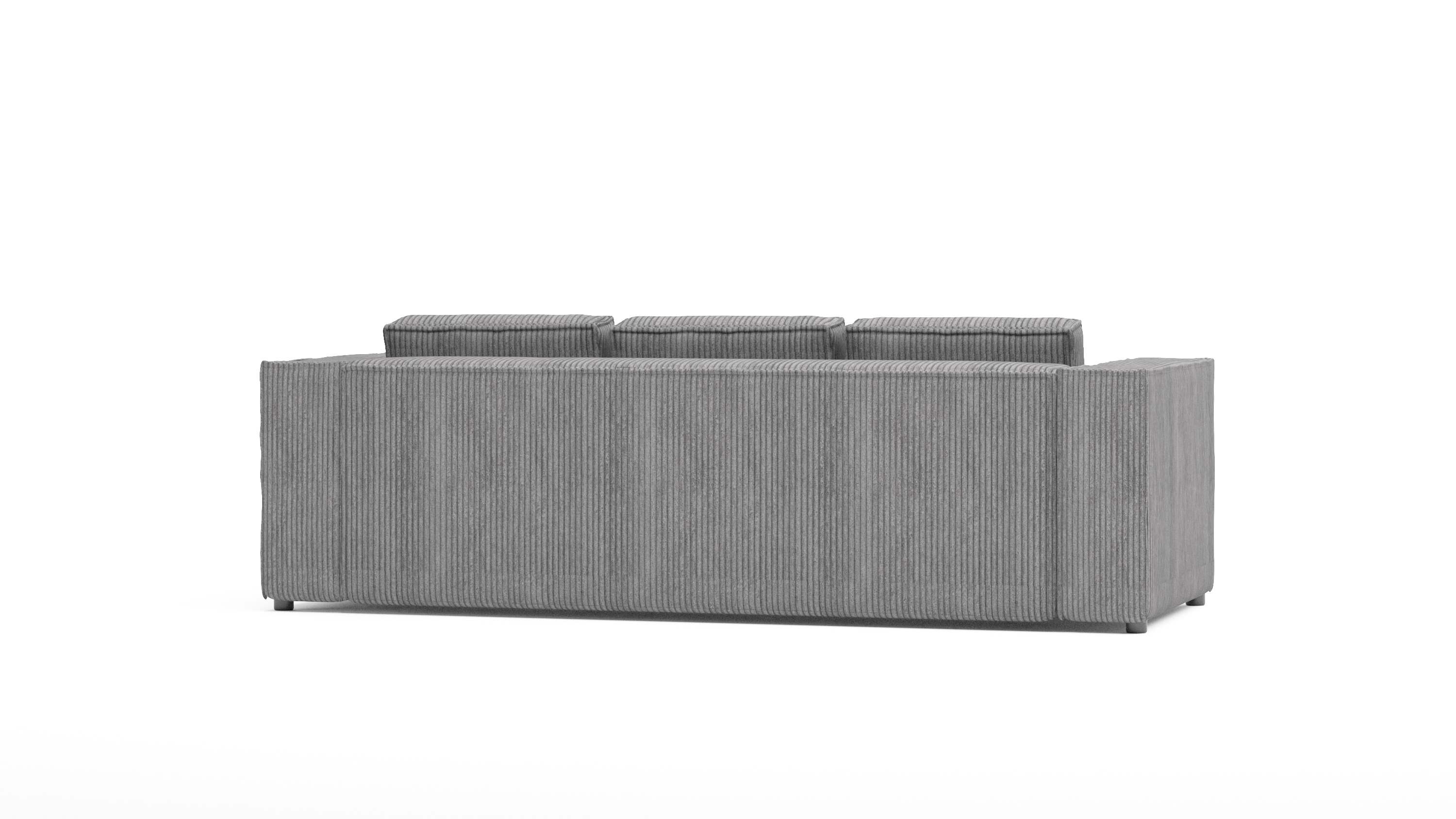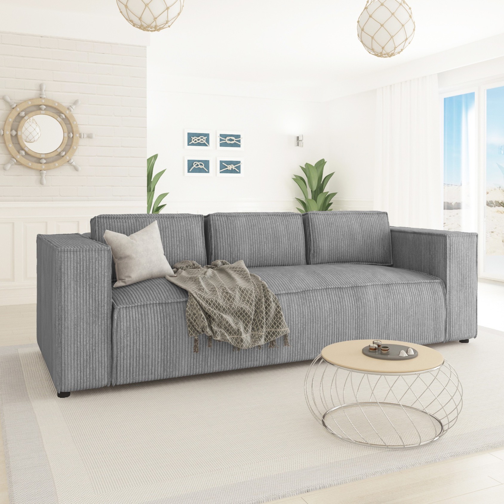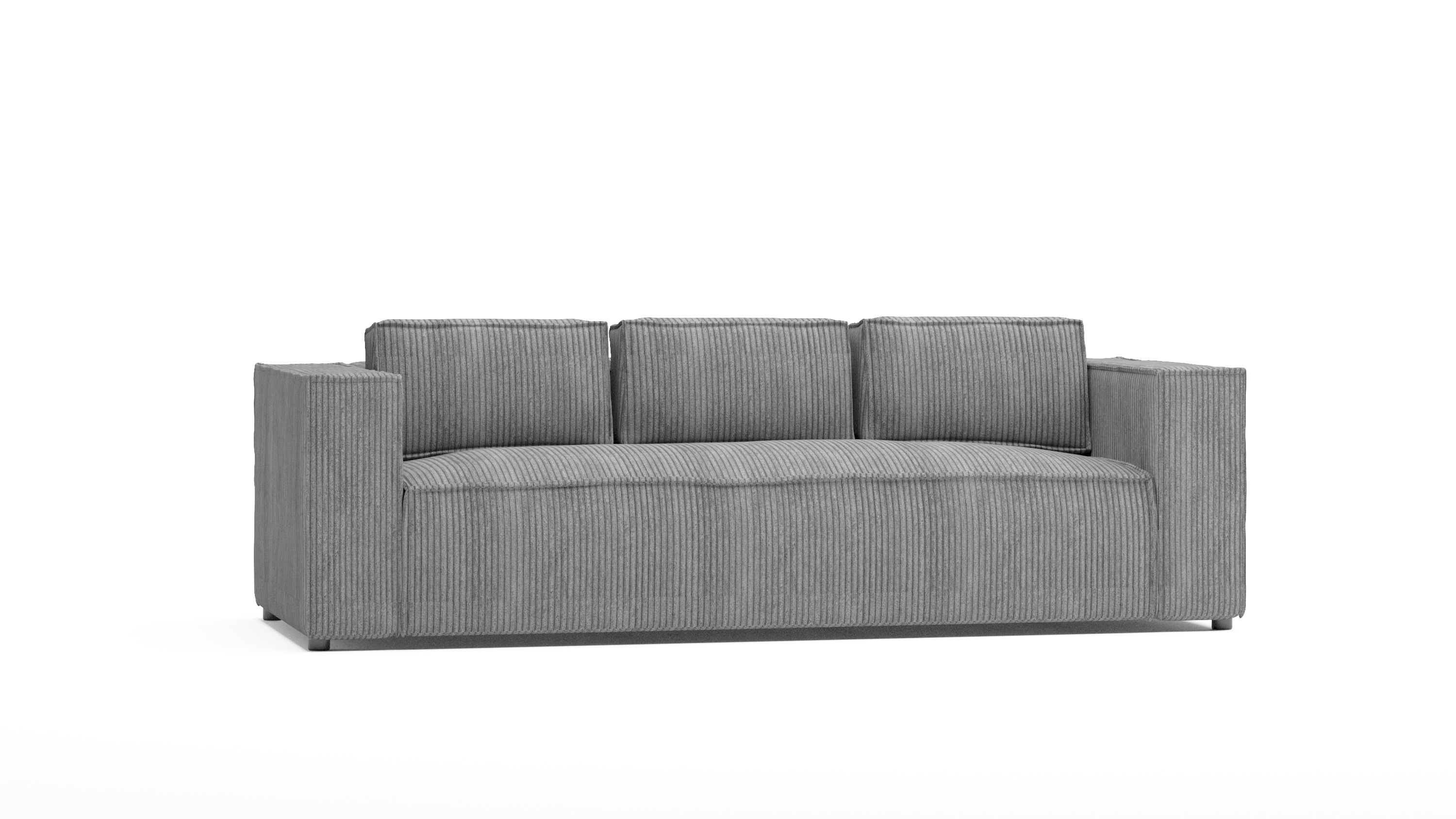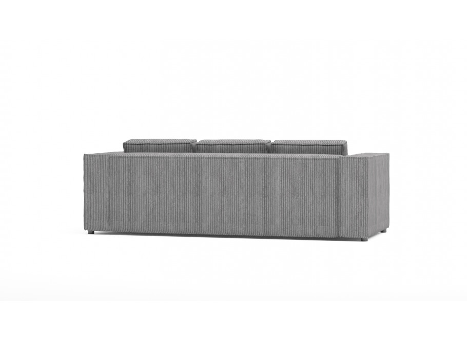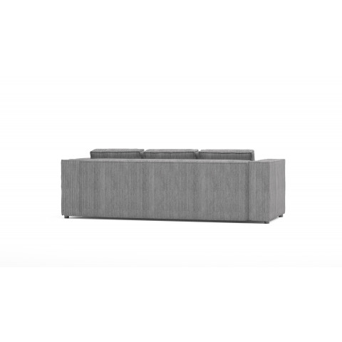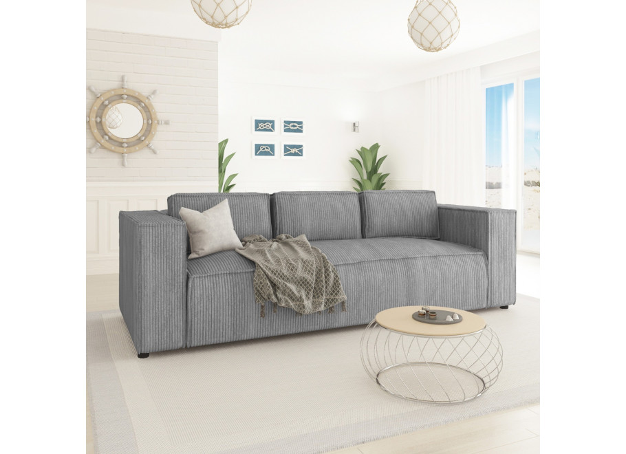 Szara sofa Esmo to uniwersalne rozwiązanie, które dobrze wpisuje się w różne style – od nowoczesnych po industrialne. Jej stonowany odcień sprawia, że łatwo dopasować ją do kolorystyki wnętrza, a subtelne prążkowanie dodaje tekstury.