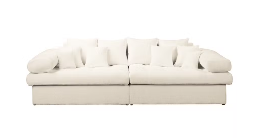 Sofa Vigo w kolorze kremowym to idealny wybór dla osób, które cenią subtelną elegancję i niezawodny komfort. Jej głębokie, pikowane siedzisko oraz szerokie podłokietniki zapewniają pełną wygodę, a komplet miękkich poduszek pozwala dostosować wsparcie pleców do własnych potrzeb.