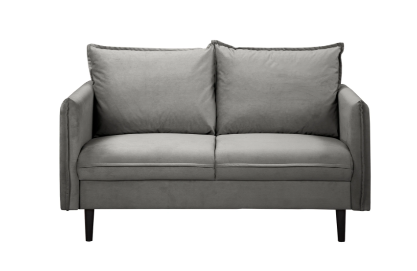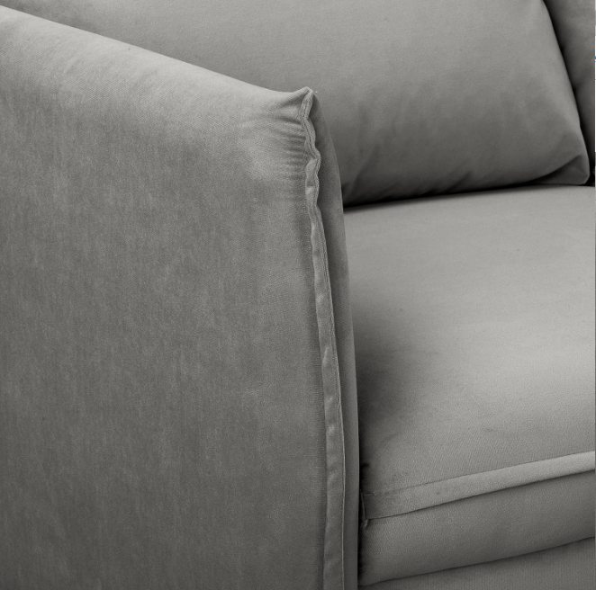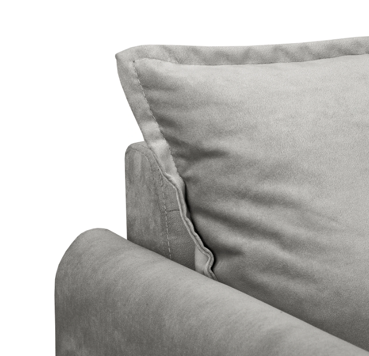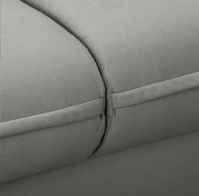 Wysokiej jakości tapicerka w odcieniu szarym pokrywa całą sofę, także z tyłu, umożliwiając ustawienie jej zarówno przy ścianie, jak i w centrum salonu.