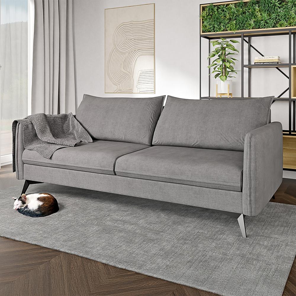 Szara sofa Verto High to klasyka w nowoczesnym wydaniu – idealna do wielu stylów wnętrzarskich. Mebel wyróżniają wysokie, eleganckie nóżki, które podkreślają jego lekką formę i nadają mu nowoczesnego charakteru.