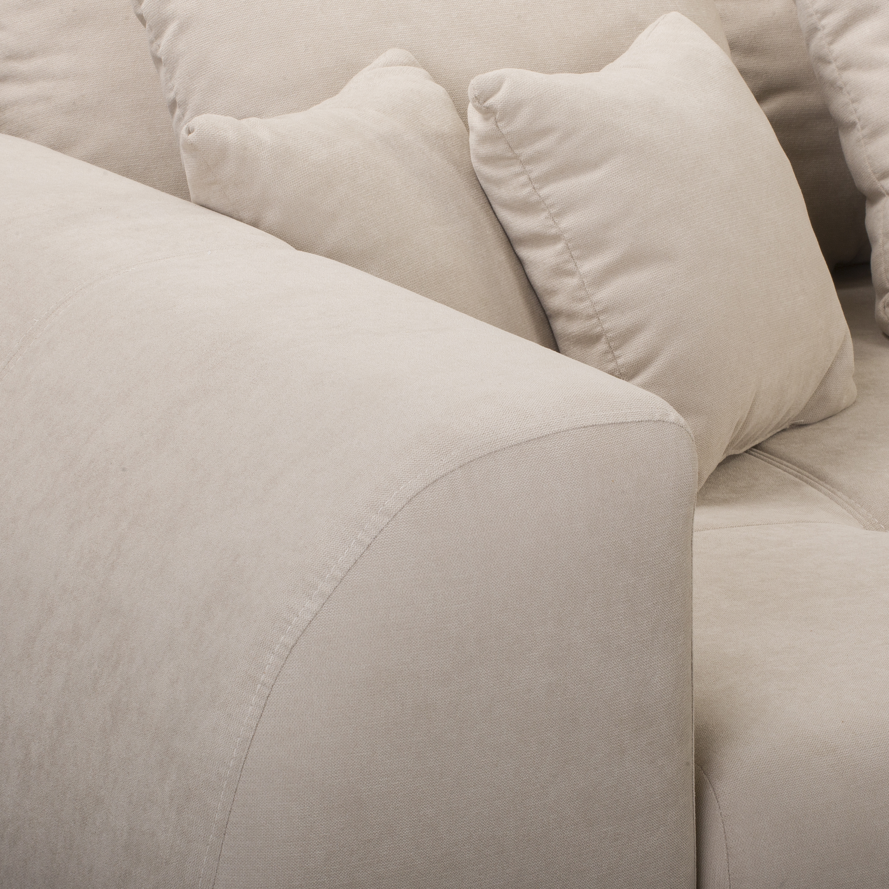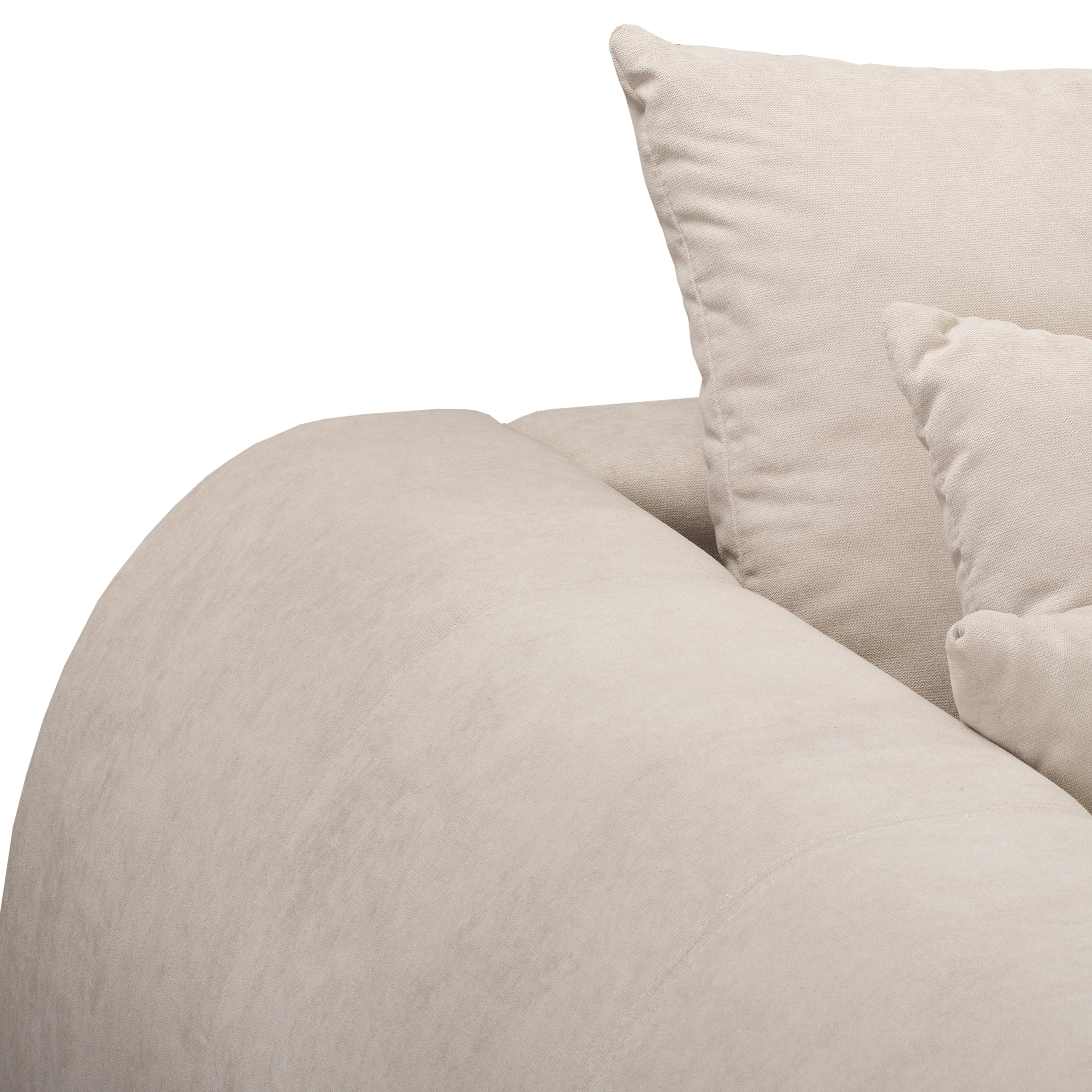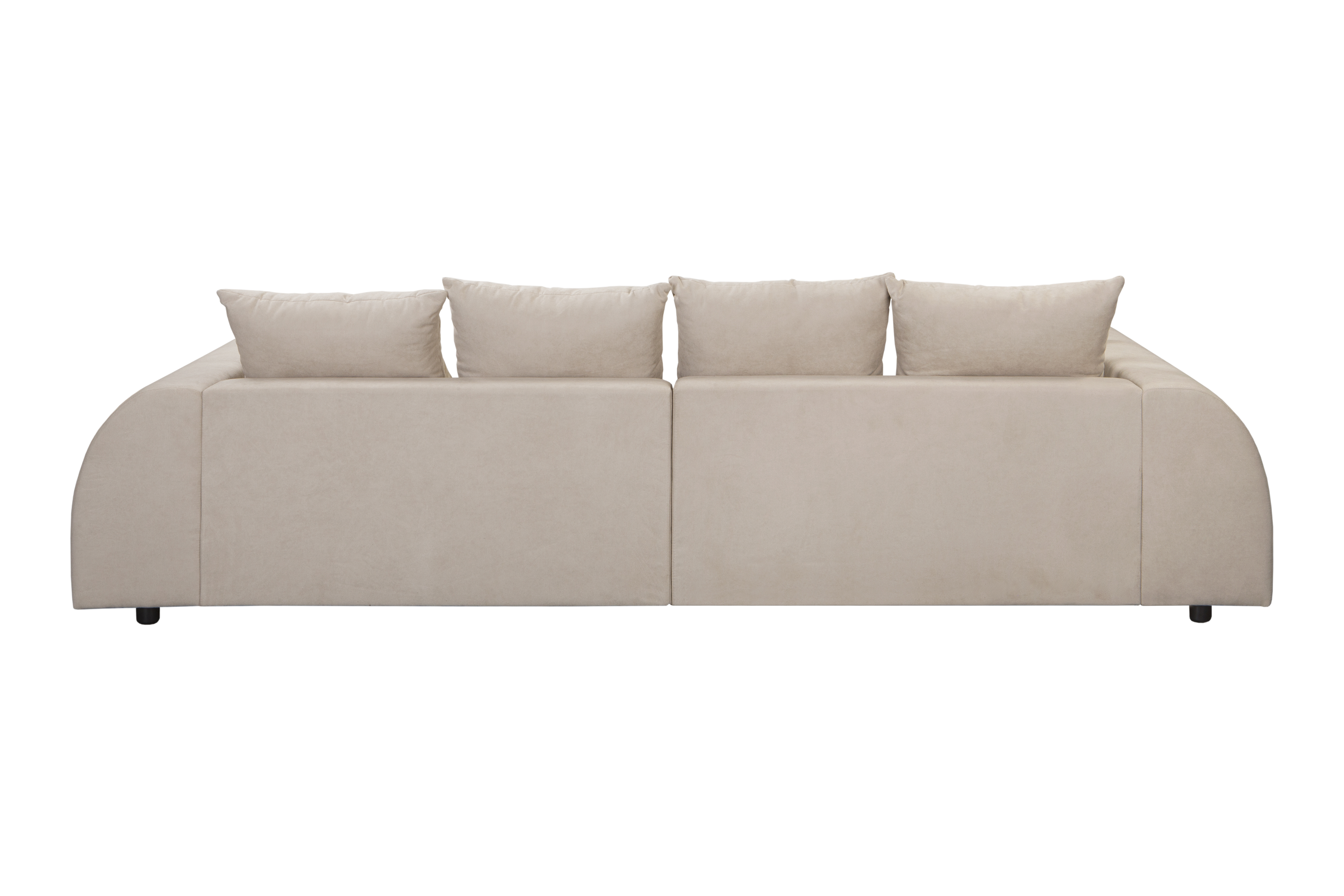 Tkanina welurowa użyta do obicia sofy jest miękka, przyjemna w dotyku i trwała. Jej jednolite pokrycie, również z tyłu oparcia, sprawia, że sofa dobrze prezentuje się z każdej strony – także jako wolnostojący mebel.