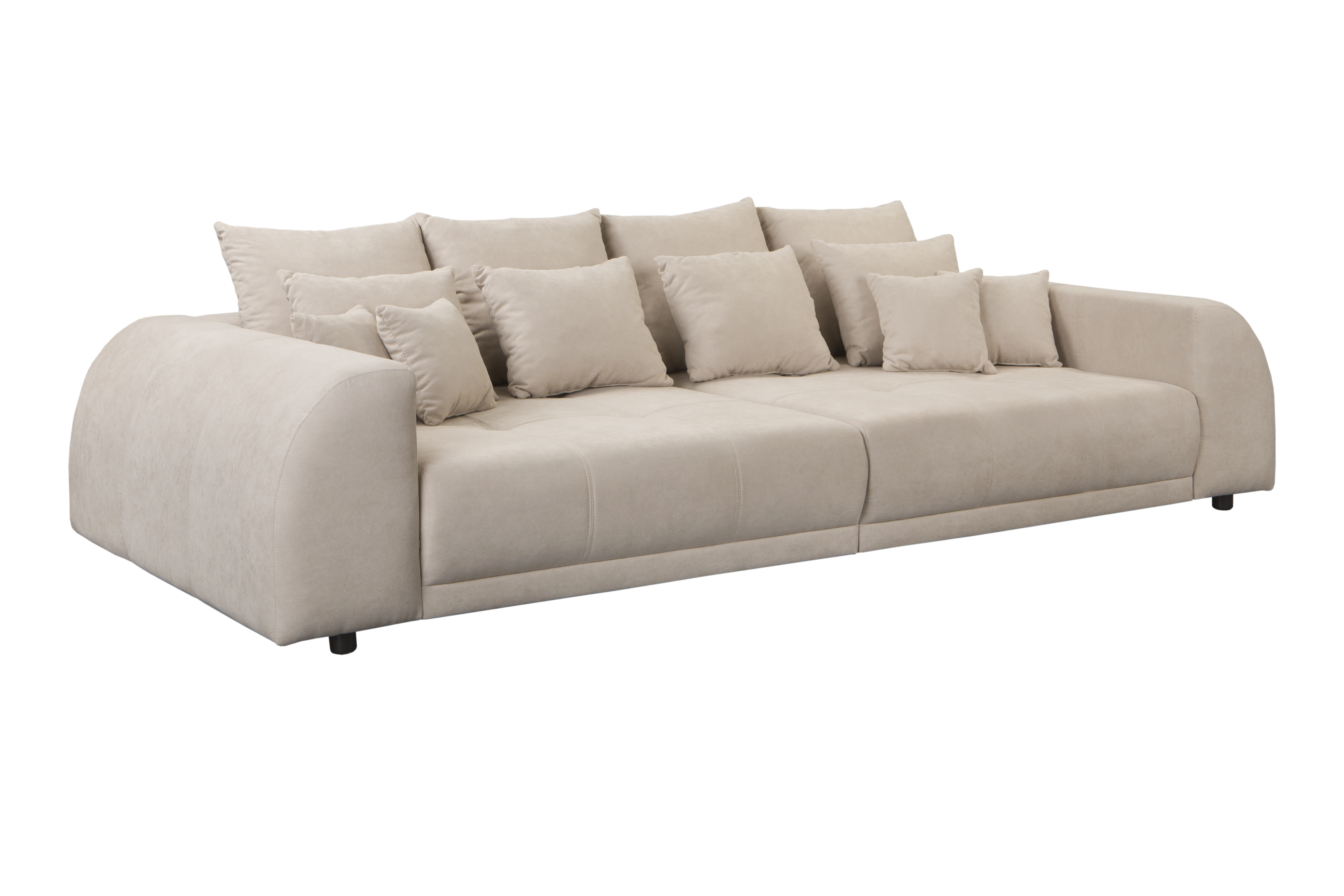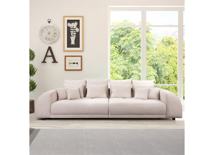 Komplet wygodnych, miękkich poduszek można łatwo dopasować do swoich preferencji – są zdejmowane i różnorodne pod względem rozmiaru, co zwiększa komfort oraz dekoracyjność sofy.
