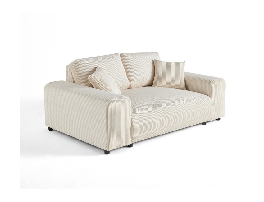 Model Candi w beżowym sztruksie sprawdzi się idealnie w mniejszych pokojach, nie tracąc przy tym na funkcjonalności ani stylu. To świetny wybór dla tych, którzy szukają równowagi między komfortem a estetyką.