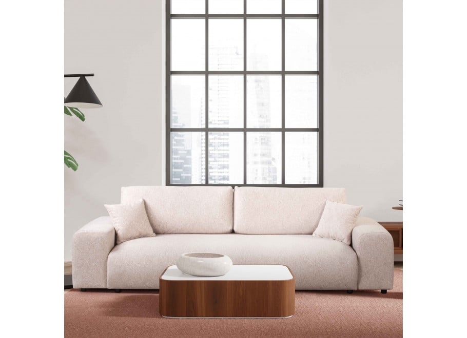 Beżowa sofa Candi to mebel, który z łatwością wpisze się w spokojne, naturalne wnętrza. Jej łagodna kolorystyka oraz subtelne, zaokrąglone formy wprowadzają do pomieszczenia miękkość i przytulność, bez rezygnacji z nowoczesnego charakteru.