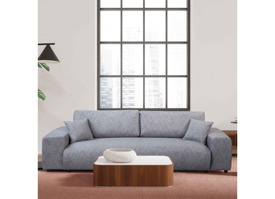 Funkcja spania o powierzchni 155 × 200 cm sprawdzi się idealnie, gdy odwiedzą Cię goście. Pod siedziskiem znajduje się pojemny schowek (198 × 78 × 17 cm), w którym bez problemu zmieścisz komplet pościeli.