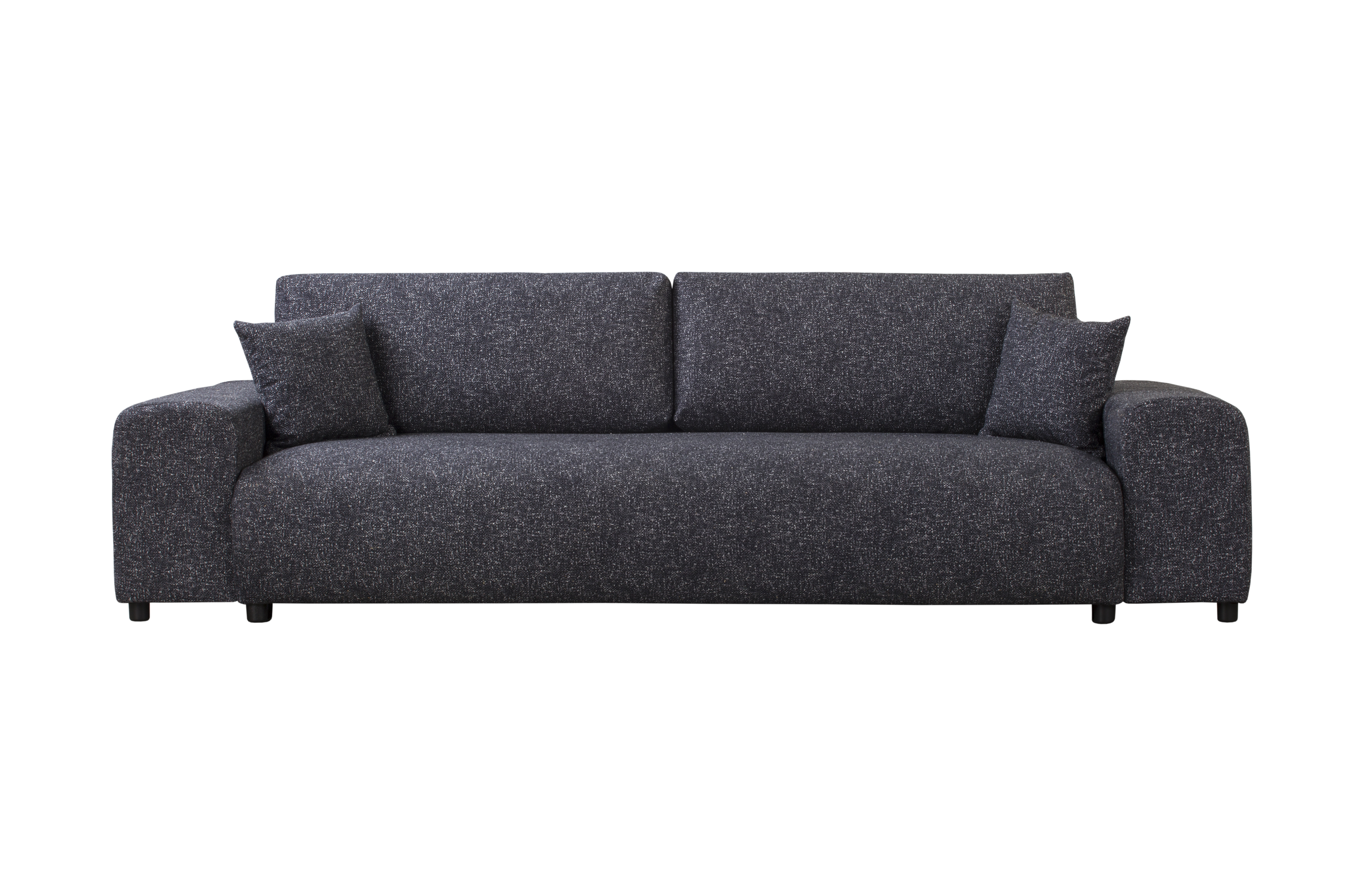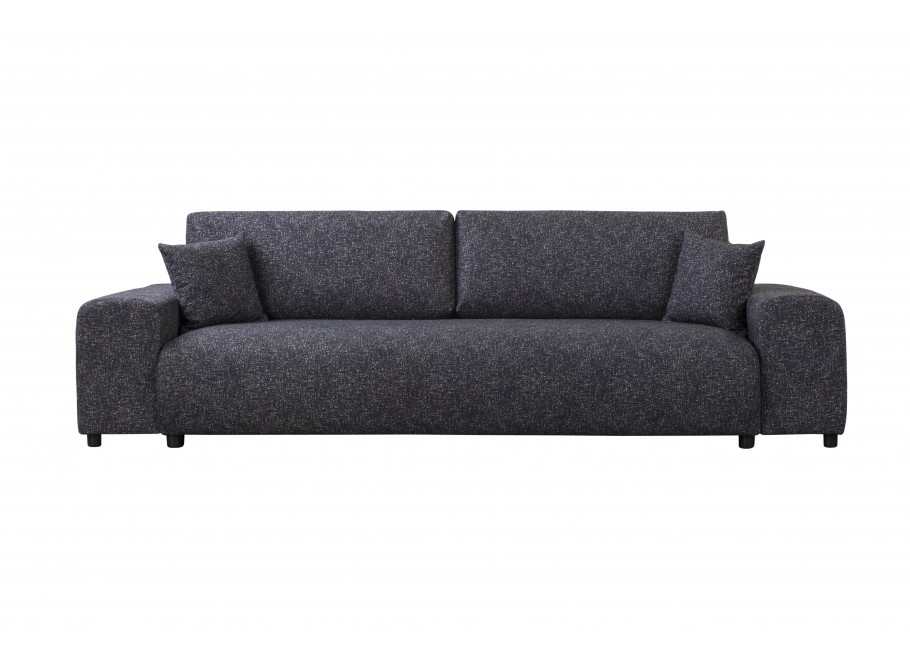 Mebel został zaprojektowany z myślą o codziennej wygodzie – posiada szerokie podłokietniki oraz zestaw czterech poduszek: dwóch dużych do oparcia i dwóch mniejszych dekoracyjnych. Dzięki nim sofa łączy wygodę z estetycznym wyglądem.