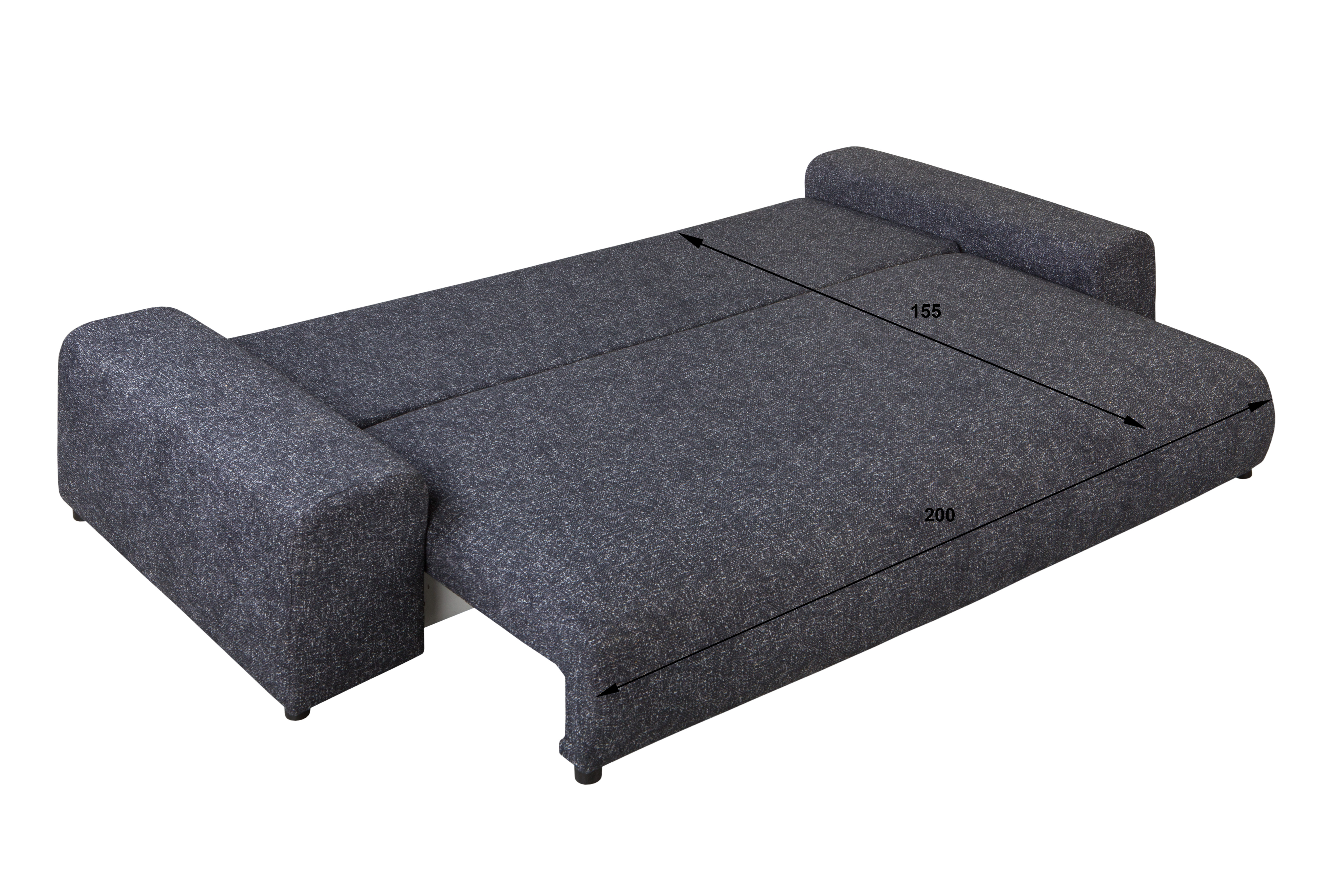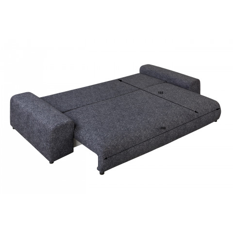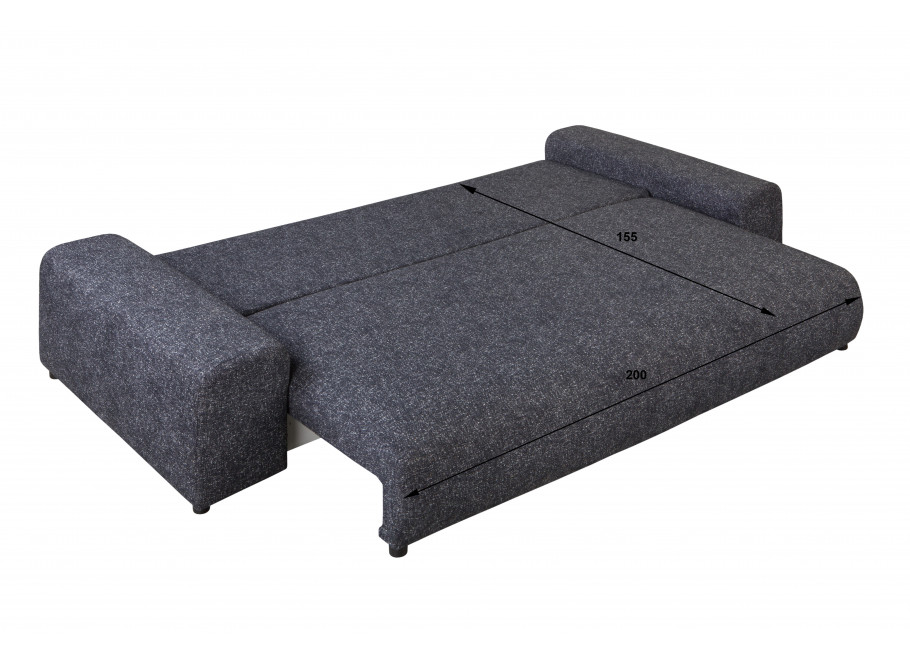 Rozkładana funkcja spania (155 × 200 cm) oraz pojemnik na pościel (198 × 78 × 17 cm) sprawiają, że mebel jest nie tylko stylowy, ale i funkcjonalny.