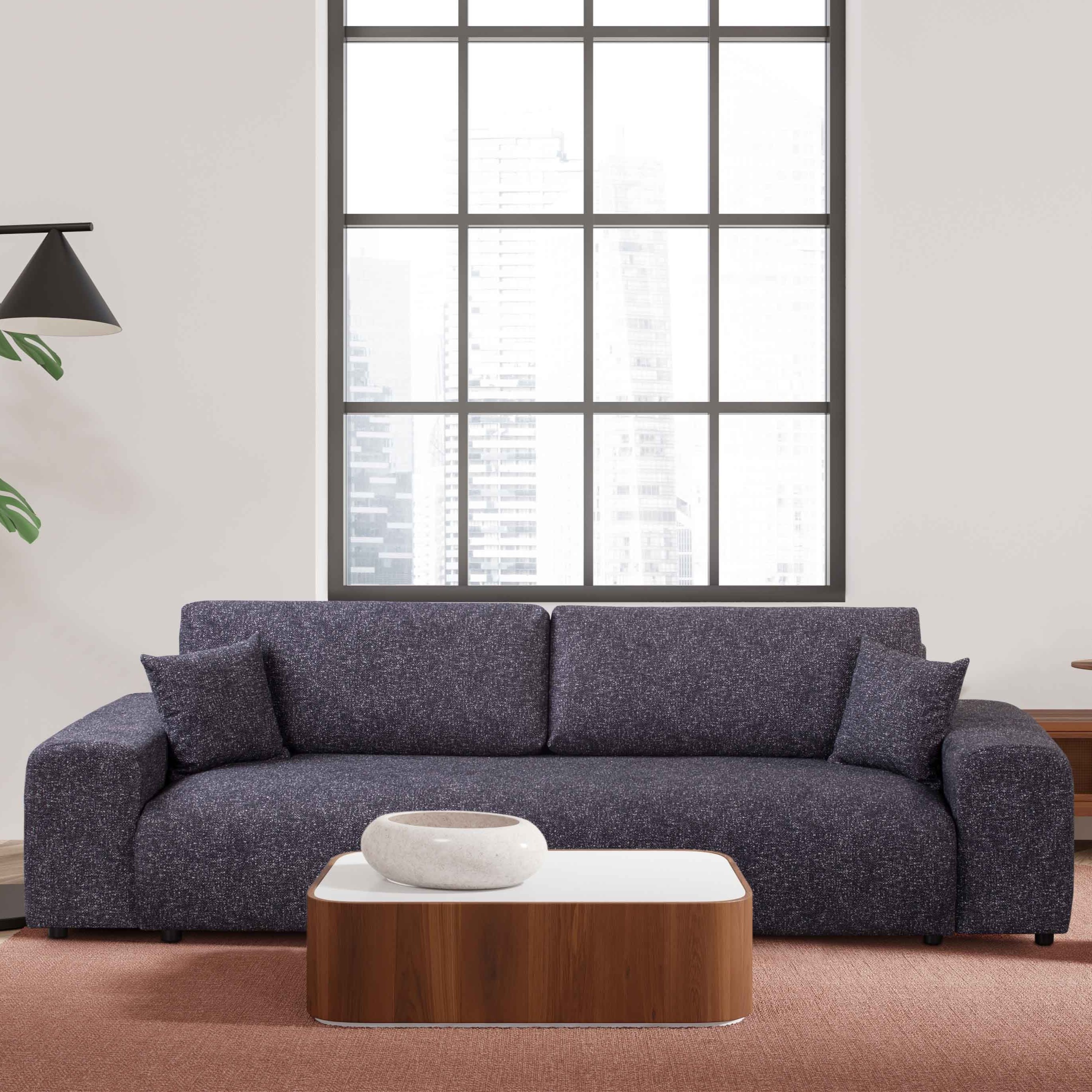 Sofa czteroosobowa Candi w grafitowym odcieniu to nowoczesna propozycja, która wyróżnia się wyrazistą kolorystyką i stonowaną elegancją. Jej zaokrąglona forma i głęboki kolor doskonale pasują do wnętrz w stylu loftowym, industrialnym lub minimalistycznym.