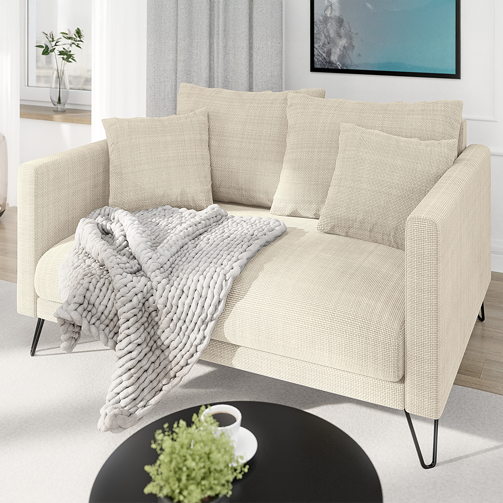 Model Ovi to sofa, która łączy wygodę i estetykę, a w kremowym wydaniu dodaje wnętrzu lekkości i świeżości. Ten jasny odcień świetnie sprawdza się w przestrzeniach o spokojnym, neutralnym charakterze, ale może też kontrastować z ciemniejszymi dodatkami.
