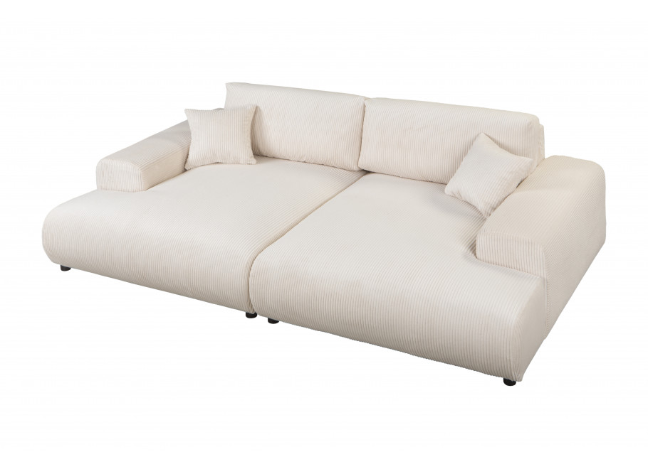 Mimo że sofa nie posiada funkcji spania, jej głębokie siedzisko i obszerna forma pozwalają na komfortowy relaks w pozycji siedzącej i półleżącej. Dodatkowe poduszki zwiększają wygodę, a odpowiednia wysokość podłokietników umożliwia swobodne oparcie ramion. To mebel stworzony z myślą o wypoczynku, spotkaniach z bliskimi i codziennym komforcie.