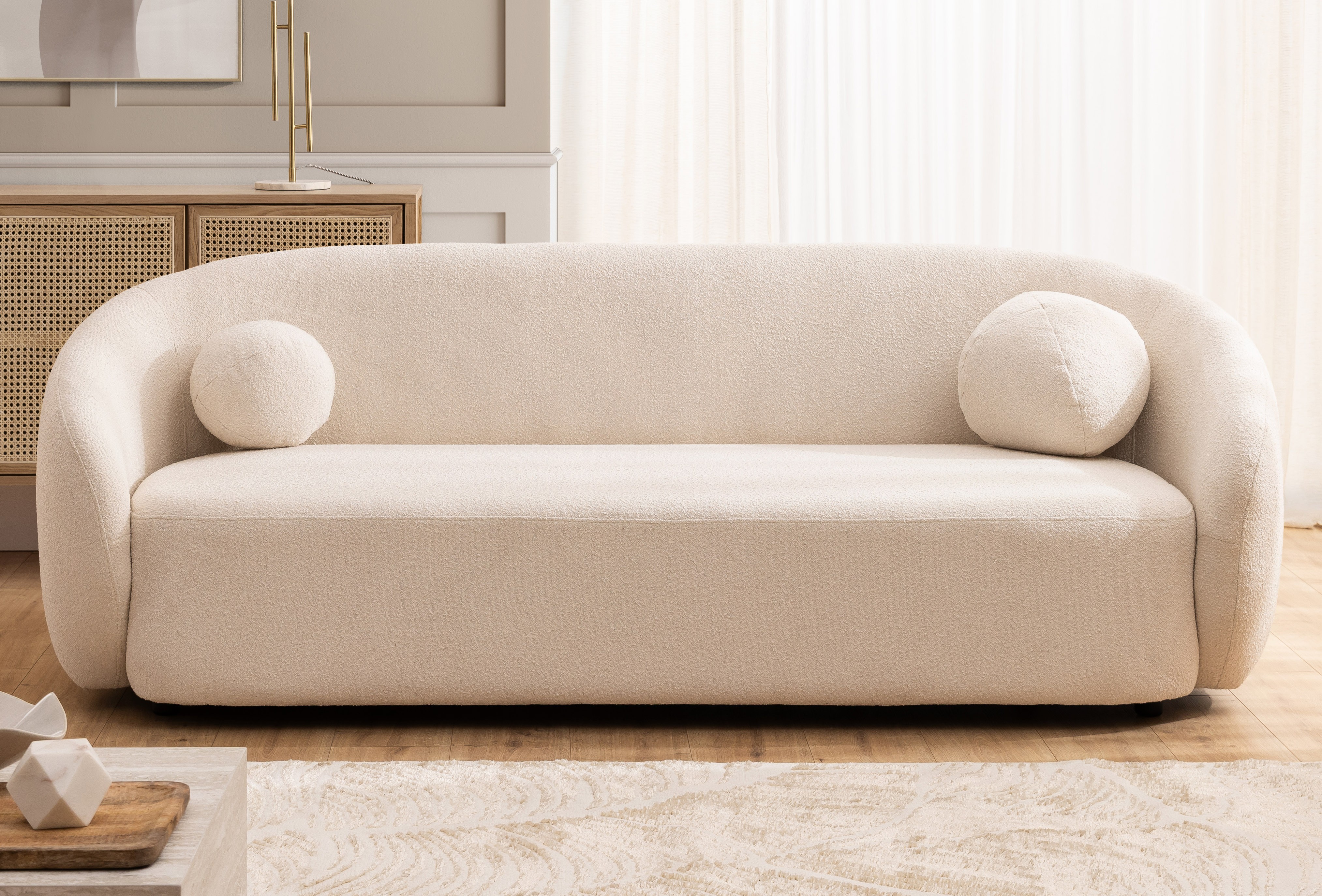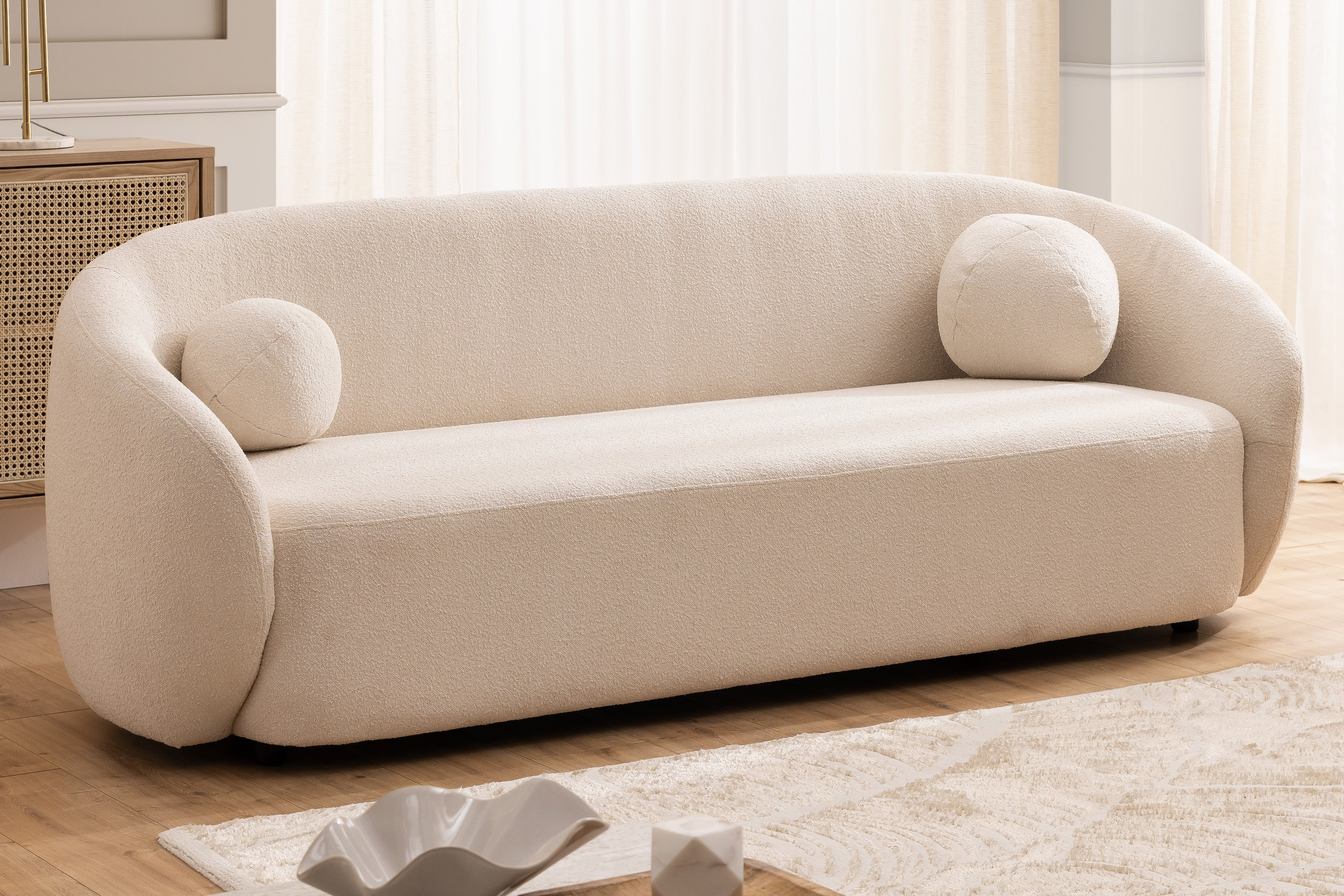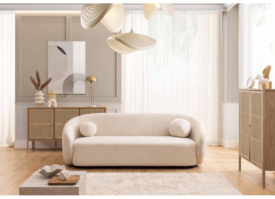 Trzyosobowa sofa z kolekcji Cloudi w odcieniu ecru to propozycja, która łączy miękki, organiczny design z wyraźnym akcentem nowoczesnej formy. Jej subtelna kolorystyka doskonale współgra z zaokrąglonymi liniami, podkreślając lekkość i harmonię całego projektu. Dzięki temu mebel idealnie odnajduje się w przestrzeniach urządzonych w stylu naturalnym, skandynawskim czy japandi.
