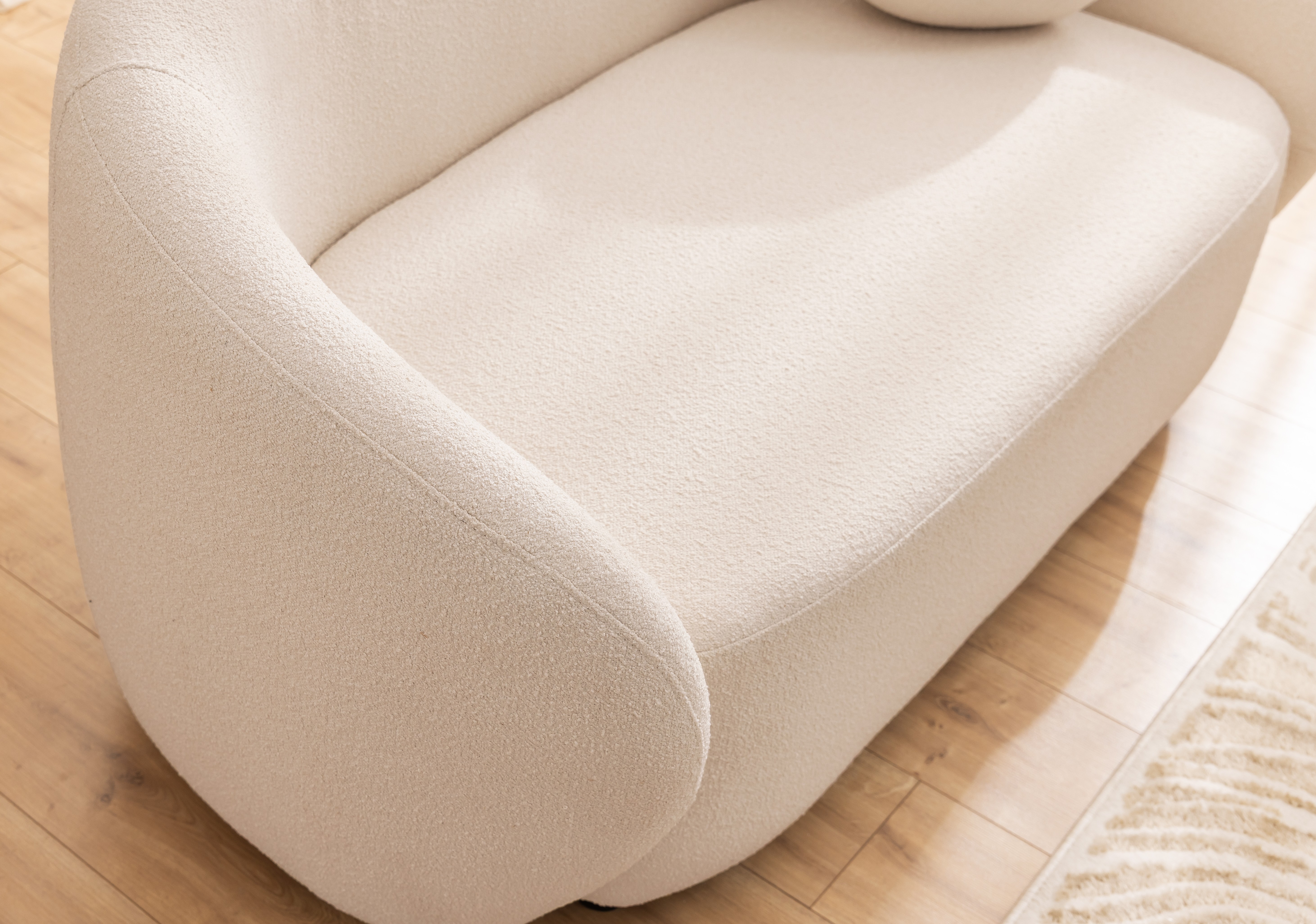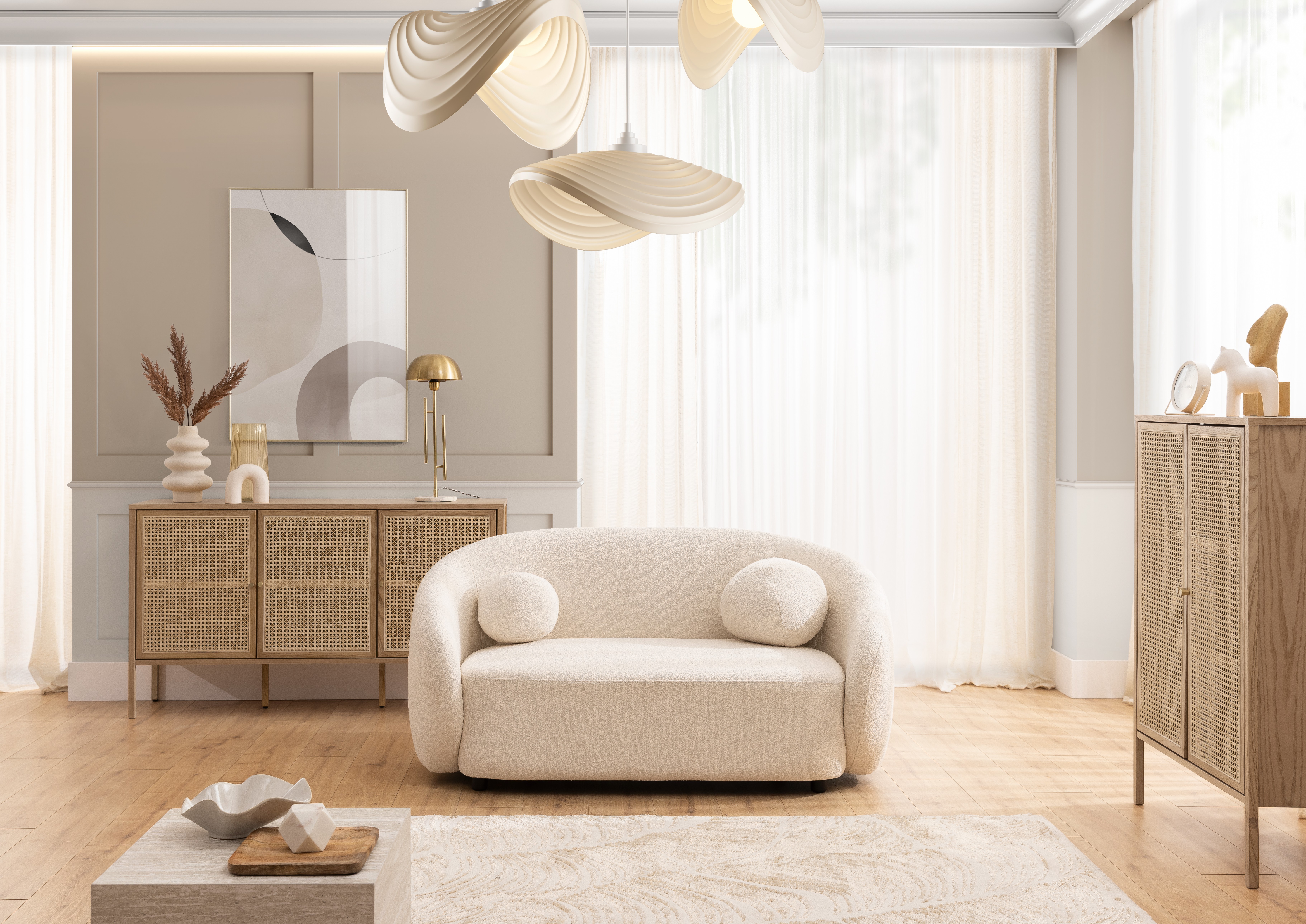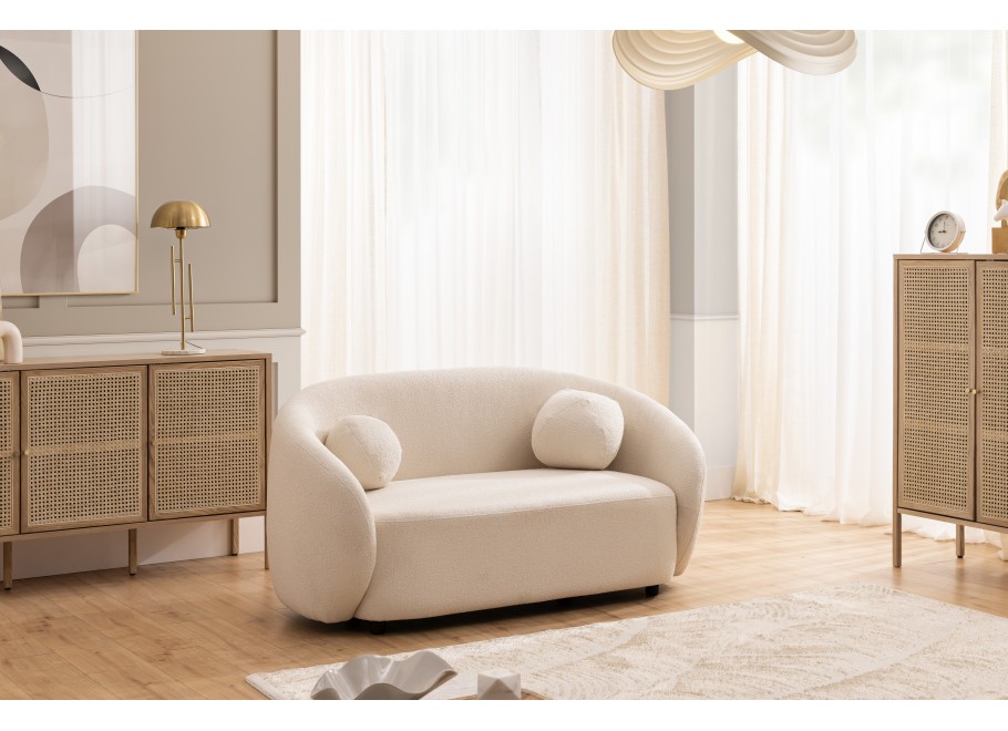 Sofa dwuosobowa Cloudi to propozycja dla tych, którzy cenią sobie harmonijne połączenie designu z wygodą. Jej miękka, organiczna forma inspirowana jest kształtami występującymi w naturze – dzięki temu świetnie wpisuje się w aranżacje pełne światła i spokoju. W wersji ecru sofa zyskuje wyjątkowo delikatny charakter, podkreślając przytulny klimat wnętrza bez narzucania się kolorystycznie.