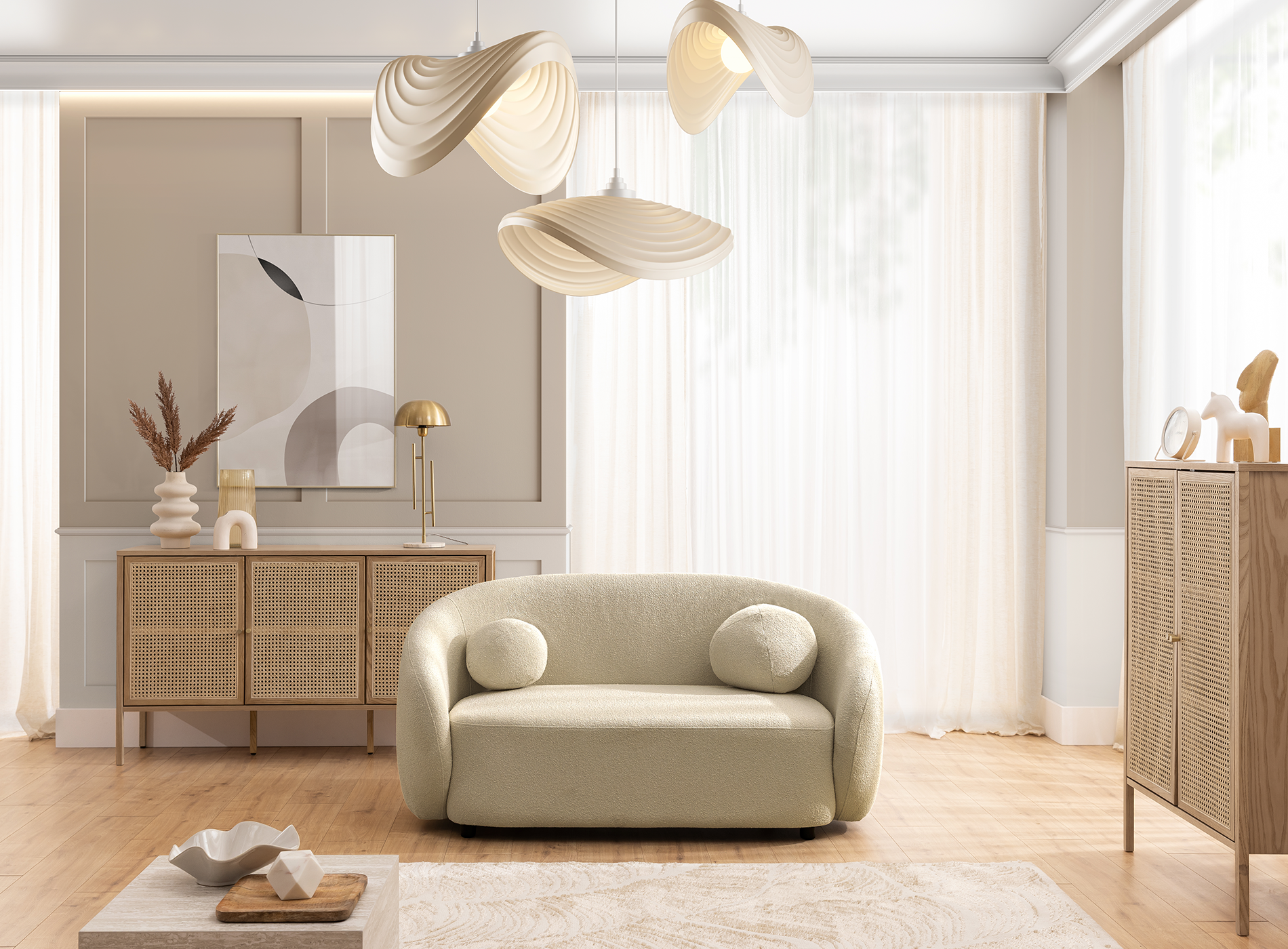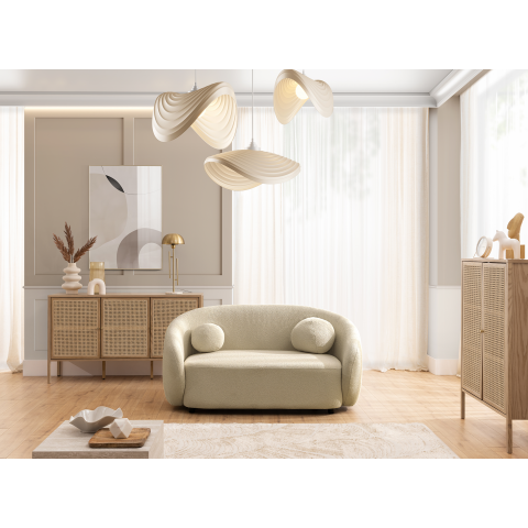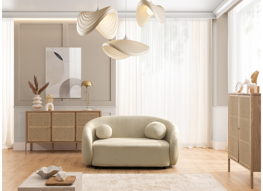 Kolekcja Cloudi to połączenie nowoczesnego wzornictwa z codziennym komfortem – sofa dwuosobowa z tej linii doskonale wpisuje się w przestrzenie pełne ciepła i światła. Jej subtelna forma inspirowana naturalnymi kształtami przyciąga uwagę swoją miękkością. Wersja beżowa wnosi do wnętrza nutę klasy i spokoju, idealnie współgrając z neutralną paletą kolorystyczną.