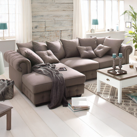 Brązowy narożnik LUZERN to propozycja dla miłośników ciepłych, klasycznych barw, które wprowadzają do wnętrza przytulny charakter. Głęboki odcień brązu sprawia, że mebel staje się elegancki i ponadczasowy, a jednocześnie doskonale komponuje się z naturalnym drewnem, beżami czy odcieniami szarości. To wariant, który podkreśla domową atmosferę, a dzięki ozdobnym pikowaniom i delikatnym przeszyciom wpisuje się w styl glamour.