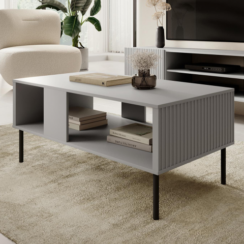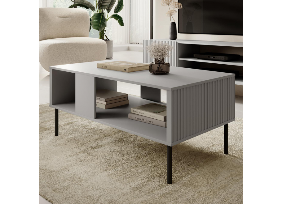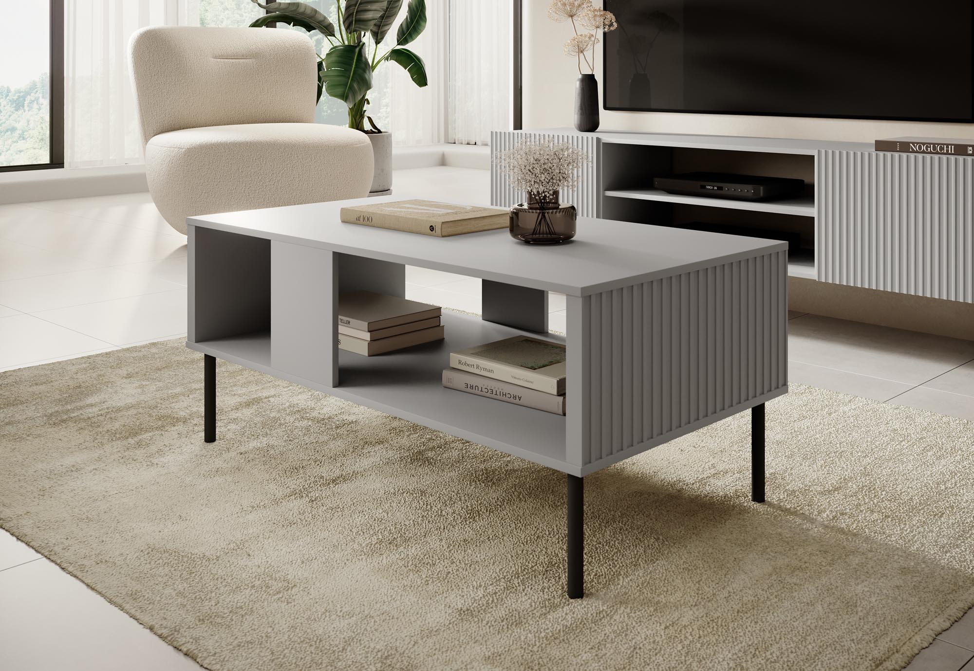 Ława Ase to mebel, który zachwyca nie tylko estetyką, ale i przemyślaną funkcjonalnością. Zaprojektowana z myślą o nowoczesnych wnętrzach, łączy w sobie prostą formę z subtelnym, dekoracyjnym detalem w postaci ryflowanych boków. Jej geometryczna bryła i spokojna kolorystyka – jasny popiel połączony z czarnymi metalowymi nogami – sprawiają, że z łatwością wpisuje się w najnowsze trendy aranżacyjne, pozostając jednocześnie ponadczasową i uniwersalną.