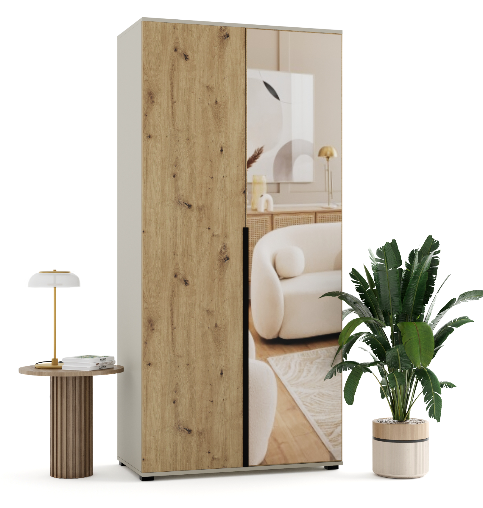 Nasza dwudrzwiowa szafa otwierana na wymiar to harmonijne połączenie designu, funkcjonalności i personalizacji. To mebel, który nie tylko przechowuje, ale też idealnie dopasowuje się do Twojego wnętrza – zarówno pod względem estetycznym, jak i wymiarowym.