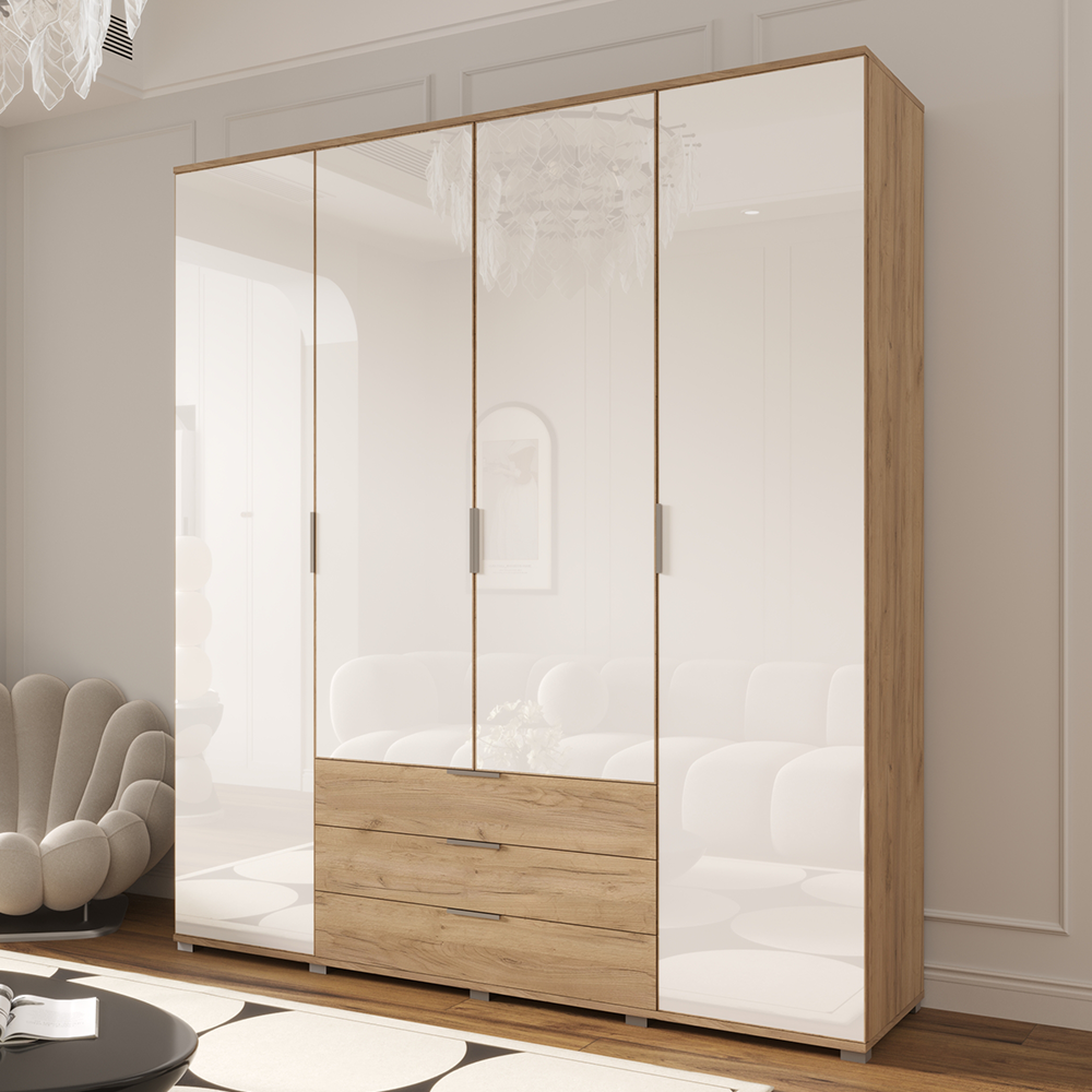 Szafa czterodrzwiowa z możliwością personalizacji – funkcjonalność, którą dopasujesz do swojego wnętrza co do centymetra.