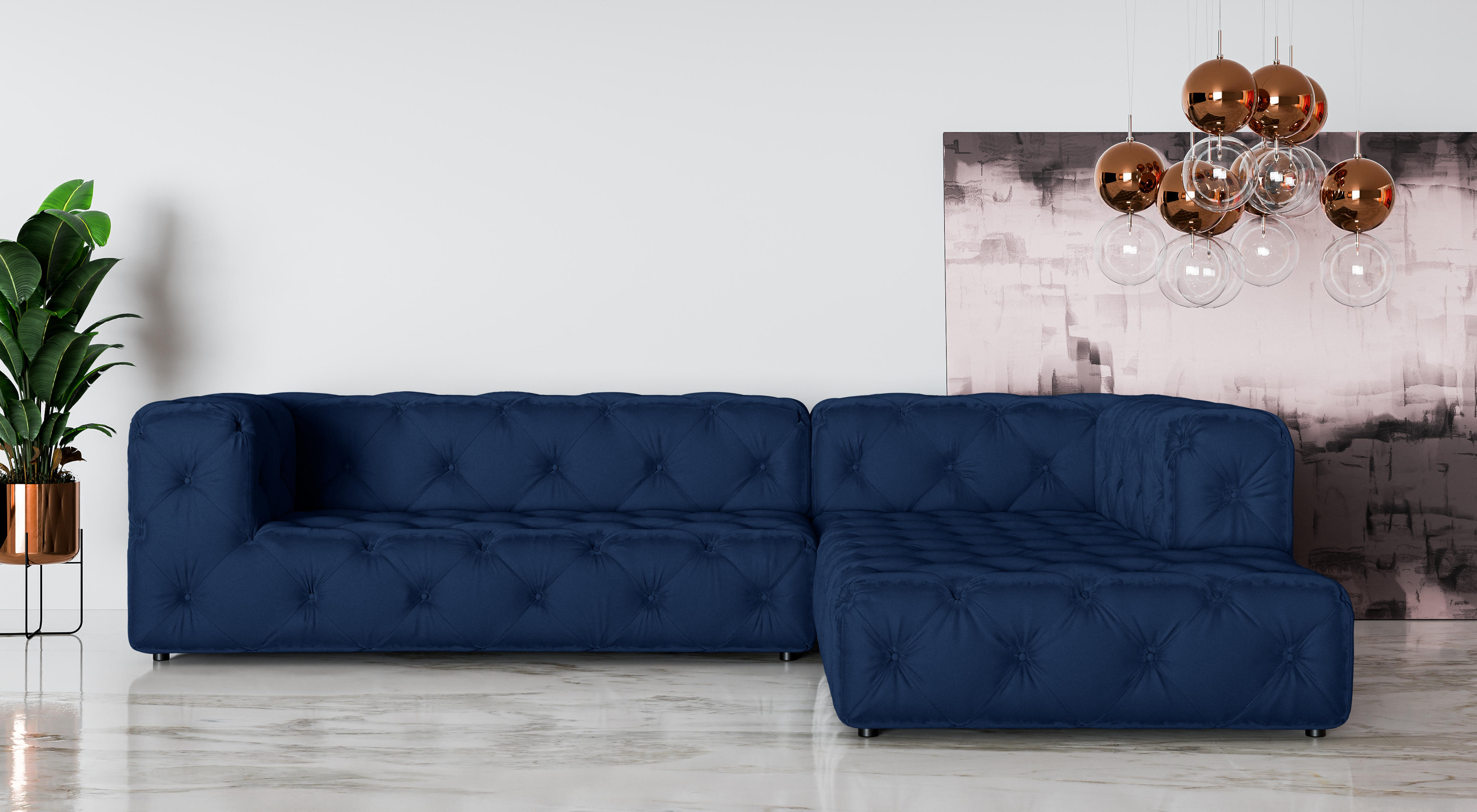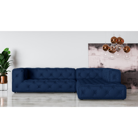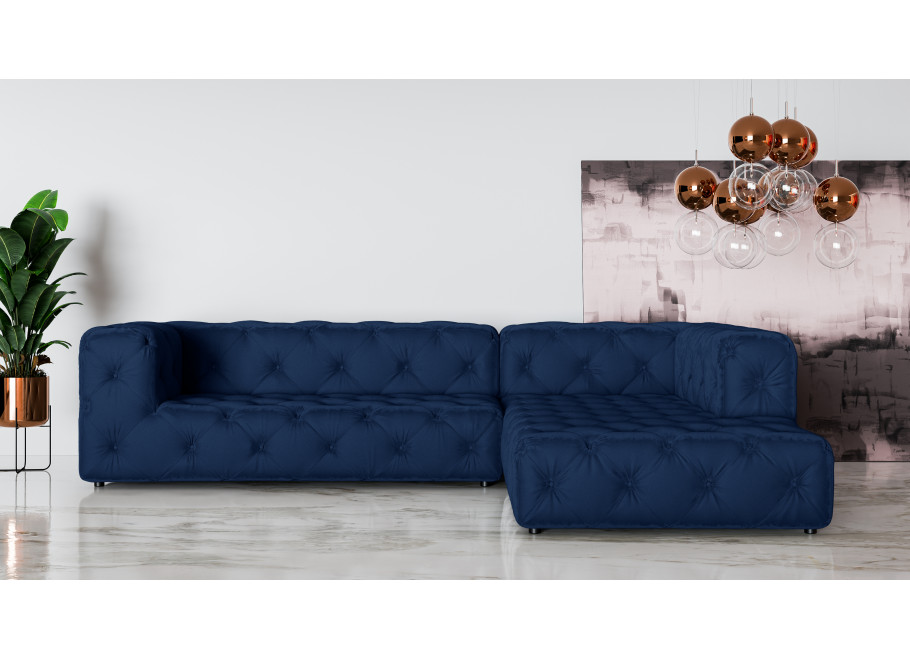 Granatowy narożnik BENTLEY to propozycja dla osób, które pragną wprowadzić do swojego salonu nutę elegancji w wyrazistej odsłonie. Głęboki granat to kolor stylowy i ponadczasowy, który doskonale prezentuje się zarówno w nowoczesnych loftach, jak i w aranżacjach glamour. Pikowania na całej powierzchni mebla szczególnie efektownie podkreślają intensywny odcień, dodając mu luksusowego charakteru.