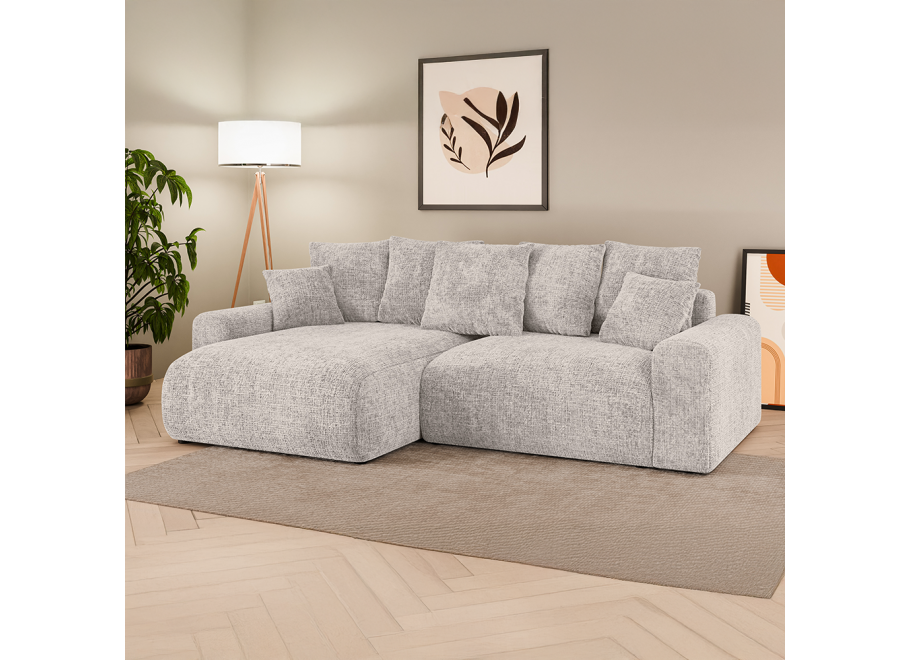 Narożnik Cleo small w kolorze beżowym to propozycja dla osób, które cenią jasne, stonowane barwy i chcą wprowadzić do salonu lekkość oraz przytulny klimat. Beż świetnie sprawdza się w roli uniwersalnej bazy aranżacyjnej – można go łączyć zarówno z drewnem, pastelami, jak i mocniejszymi akcentami kolorystycznymi. Dzięki temu mebel w tej odsłonie stanie się nie tylko praktycznym elementem wyposażenia, ale też elegancką ozdobą wnętrza.