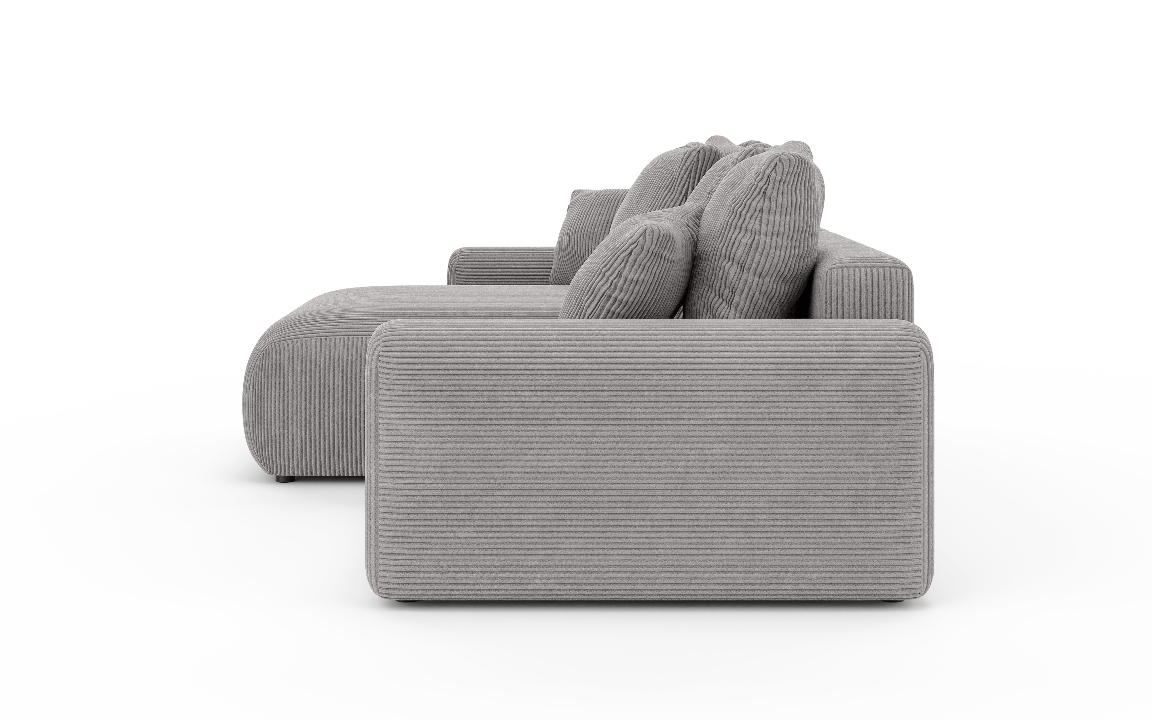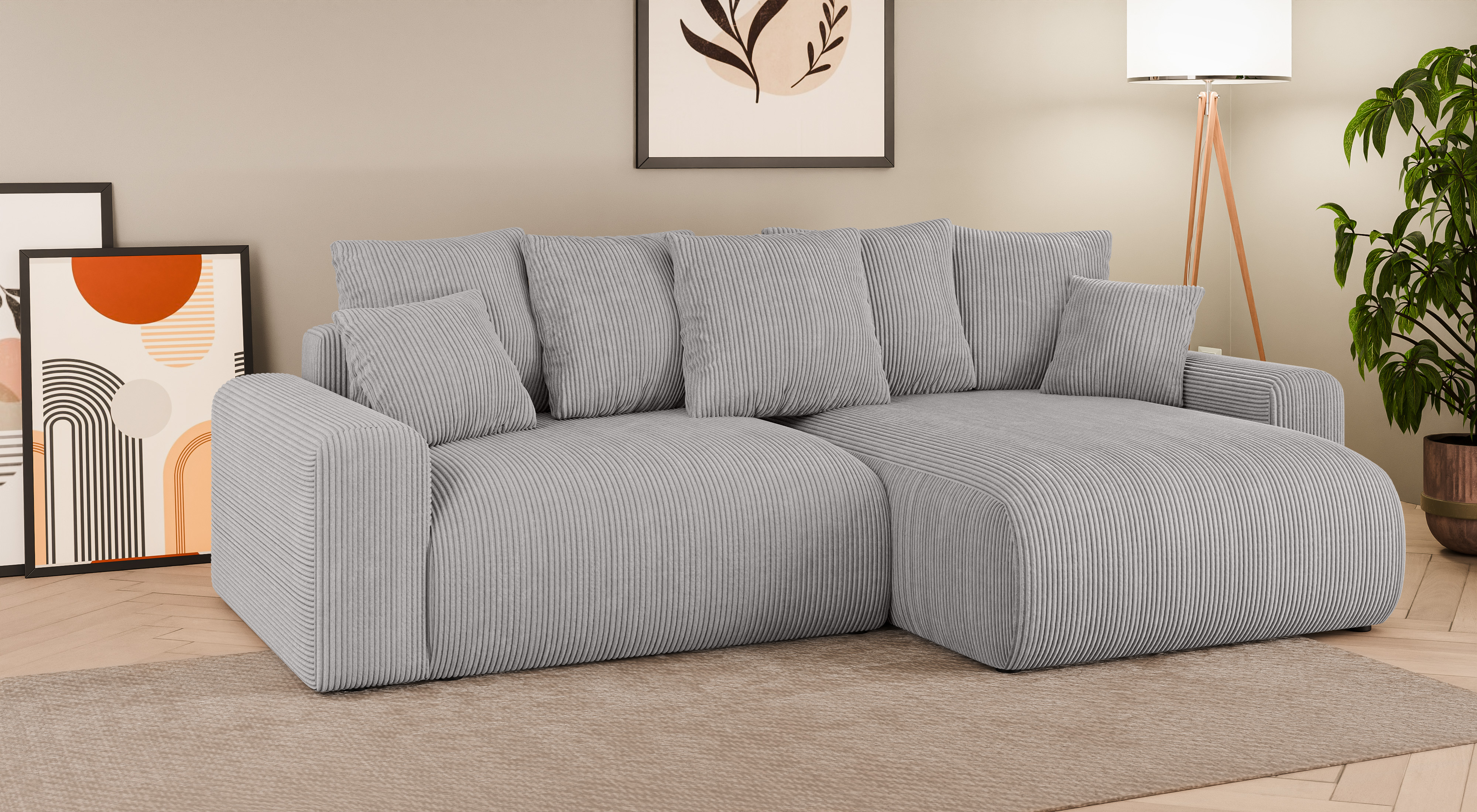 Szary narożnik Cleo small to wybór dla osób, które cenią sobie praktyczność, estetykę i ponadczasowy design. Uniwersalna kolorystyka, wygoda i dodatkowe funkcje czynią go meblem, który odnajdzie się w każdym wnętrzu, stając się centralnym punktem salonu.