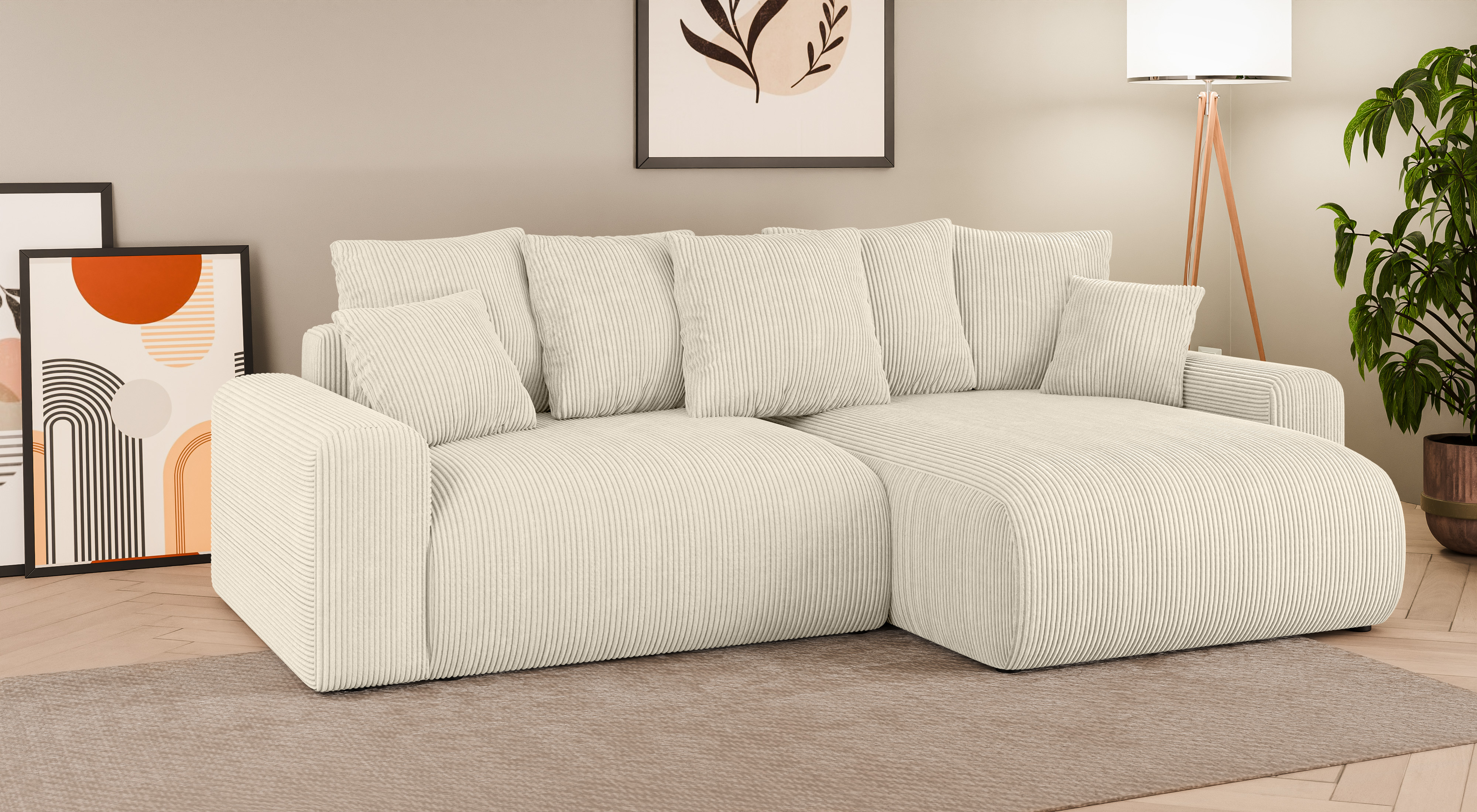 Cleo small w kremowej odsłonie to narożnik, który sprawdzi się w niemal każdym wnętrzu – od przytulnych aranżacji skandynawskich, przez minimalistyczne, po eleganckie i klasyczne. To mebel, który łączy funkcjonalność, trwałość i wyjątkową estetykę, stając się centralnym punktem salonu i ulubionym miejscem codziennego odpoczynku.