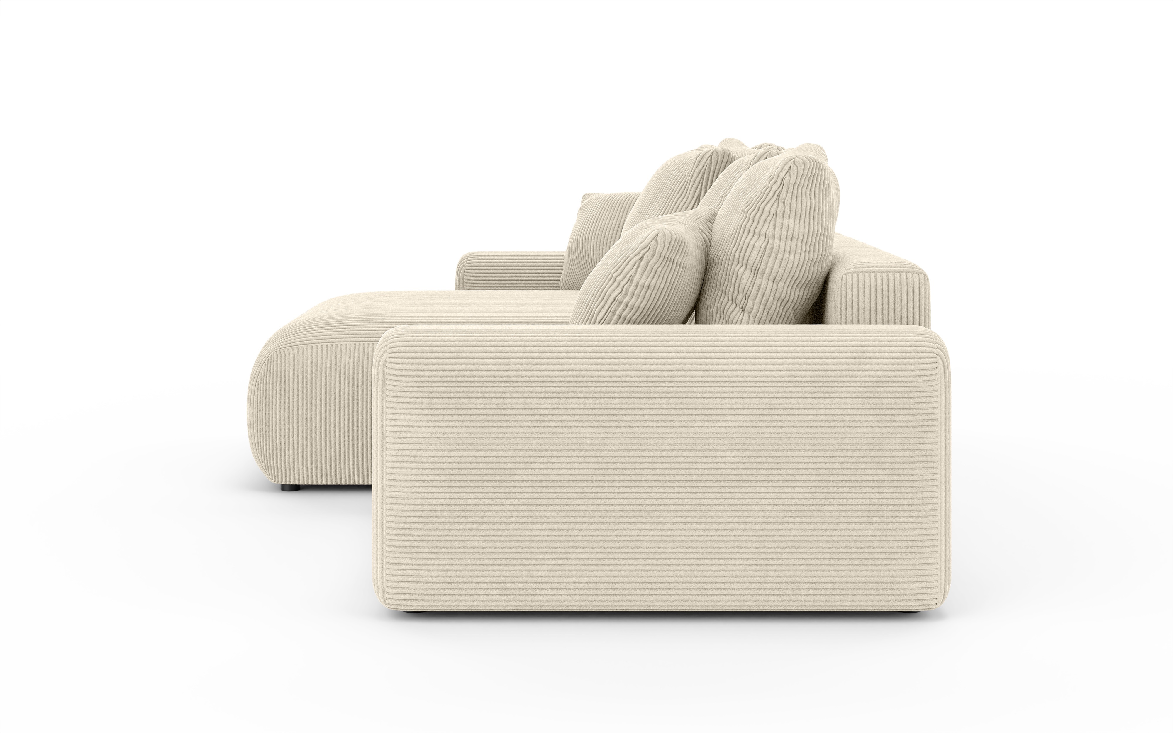 Model Cleo small zaprojektowano w kształcie litery L, dzięki czemu narożnik oferuje wygodną przestrzeń dla całej rodziny. Obszerne siedziska i dobrze wyprofilowane oparcia wypełnione są wysokoelastyczną pianką poliuretanową, która dopasowuje się do sylwetki użytkownika, zapewniając jednocześnie sprężystość i trwałość na lata. Dołączone poduszki dekoracyjne zwiększają komfort oraz podkreślają przyjemny, domowy charakter mebla.
