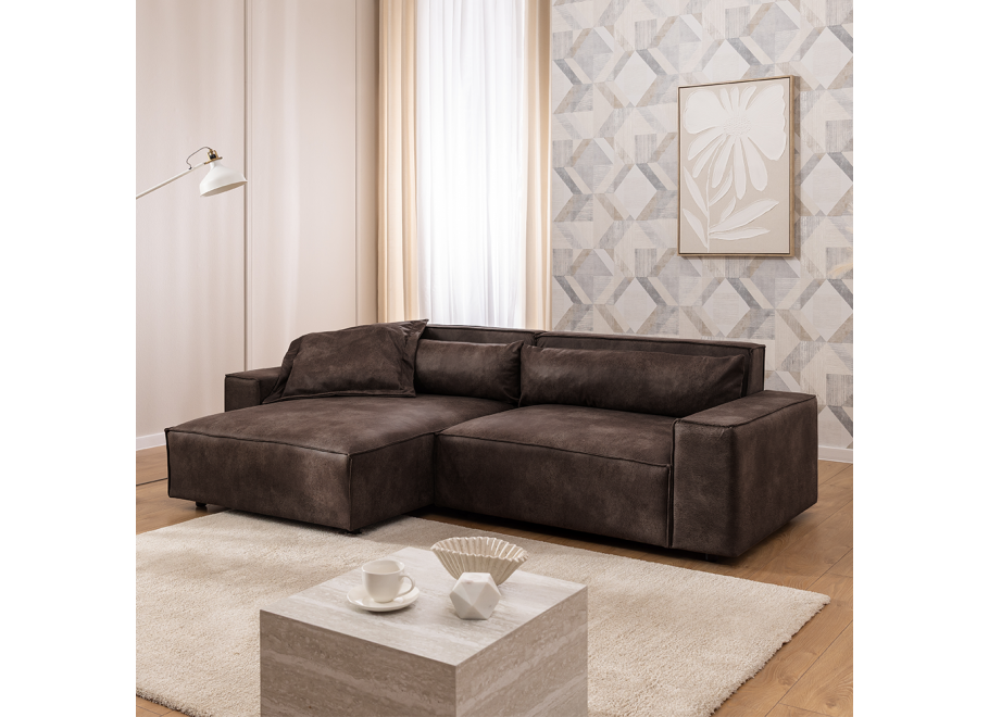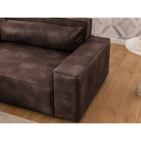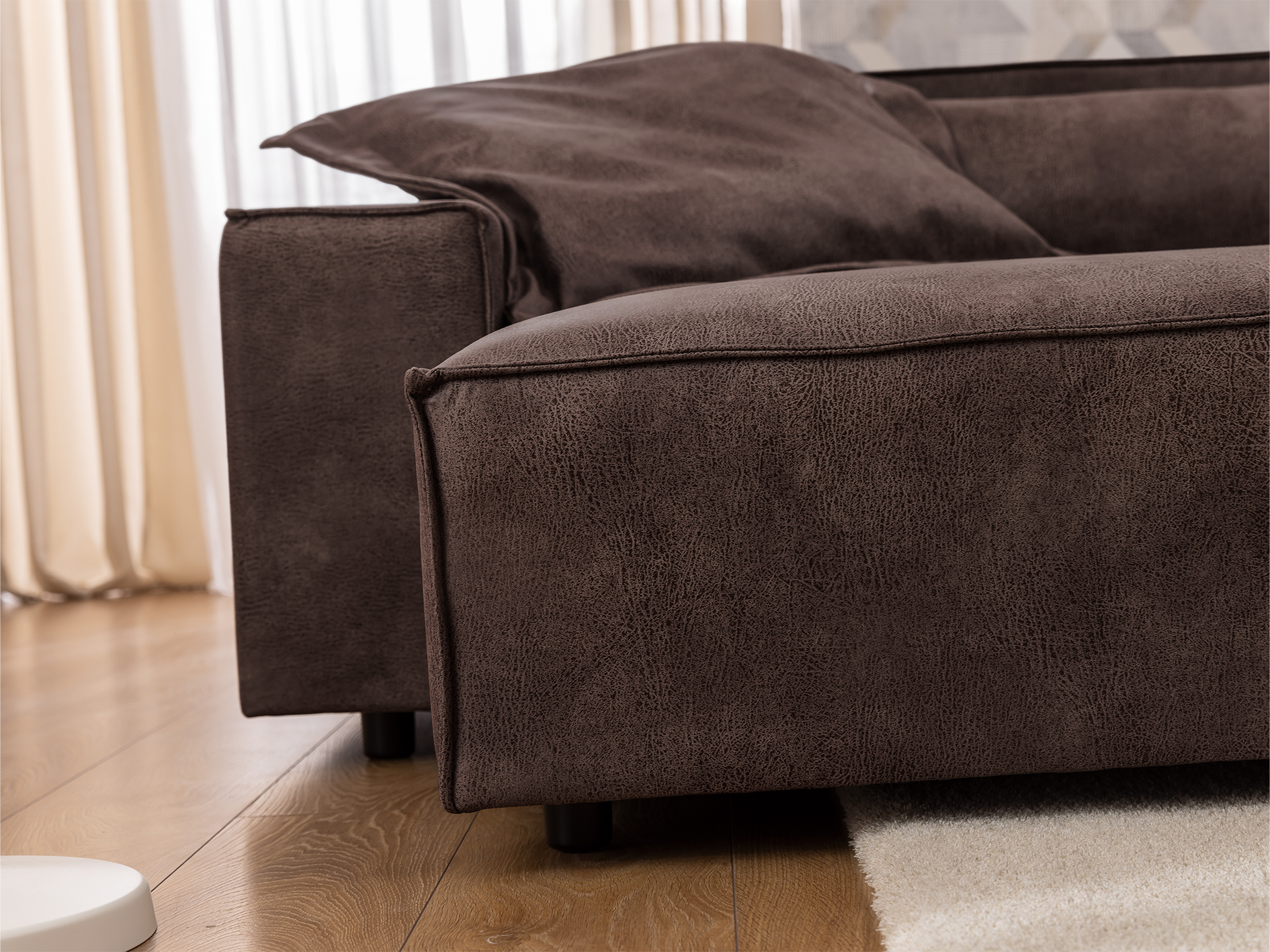 Ciemny brąz ekoskóry nadaje narożnikowi elegancji i ponadczasowego charakteru. To kolor, który świetnie komponuje się z jasnymi dodatkami, wprowadzając do wnętrza przytulność i głębię. Ekoskóra jest również materiałem praktycznym – łatwym do utrzymania w czystości, co sprawia, że mebel jest nie tylko stylowy, ale i funkcjonalny na co dzień.