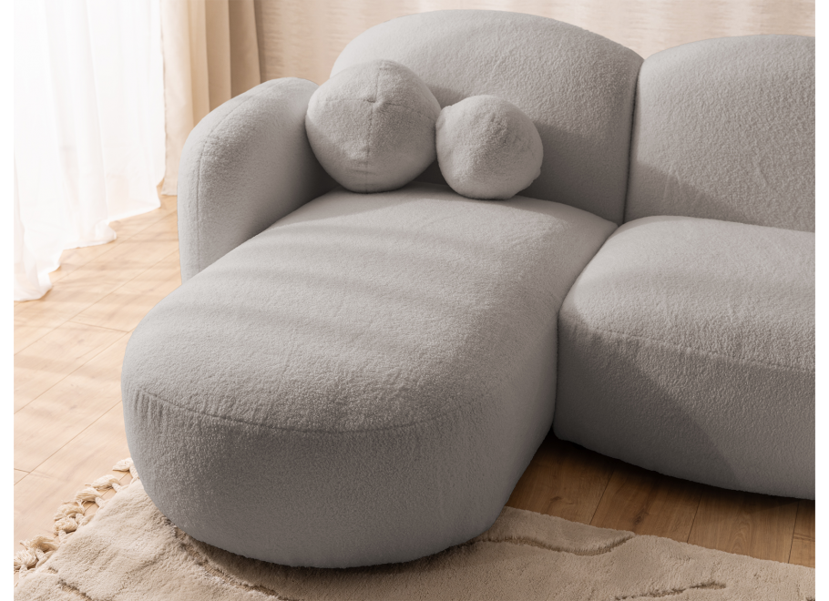Narożnik w kolorze jasny popiel to nowoczesne i uniwersalne rozwiązanie, które świetnie pasuje do różnych aranżacji wnętrz. Subtelny, szary odcień wprowadza do pomieszczenia spokój, elegancję i równowagę, dzięki czemu łatwo go dopasować zarówno do minimalistycznych, jak i bardziej klasycznych stylizacji. Obła forma mebla, inspirowana naturalnymi kształtami, sprawia, że narożnik wygląda lekko i harmonijnie. Delikatnie wyprofilowane oparcia i gładkie linie boków podkreślają jego designerski charakter, a jednocześnie zapewniają komfort użytkowania.
