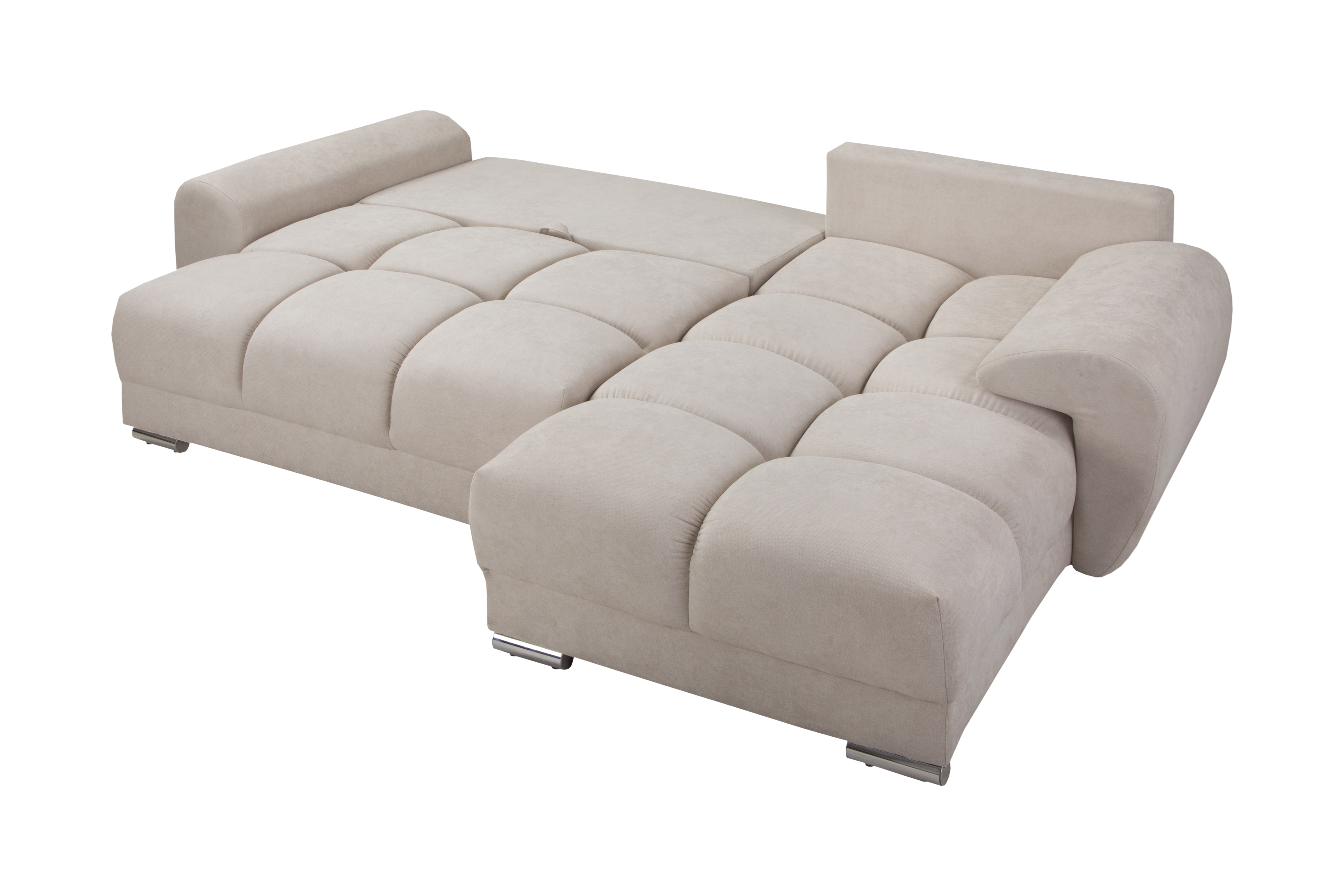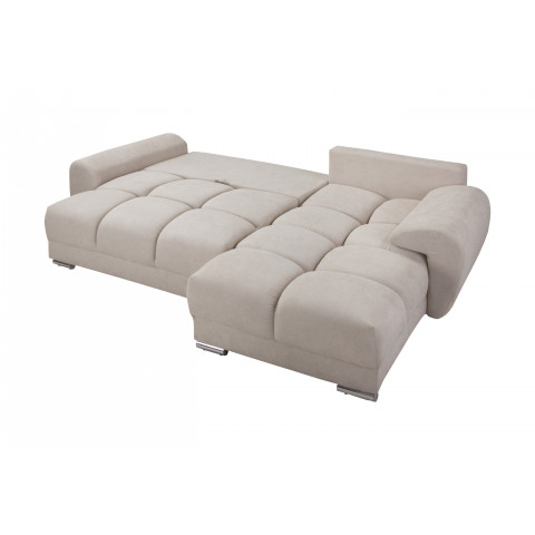 Ten stylowy model jest w pełni rozkładany, oferując intuicyjną w obsłudze i niezawodną funkcję spania o imponującej powierzchni 196 x 150 cm, co czyni go doskonałym rozwiązaniem zarówno do komfortowej popołudniowej drzemki, jak i podczas wizyty gości, zamieniając salon w wygodną sypialnię. Pod siedziskiem ukryty został niezwykle przestronny i funkcjonalny pojemnik na pościel o dokładnych wymiarach 127 cm x 62 cm x 26,5 cm, który pomoże Ci utrzymać nienaganny porządek i zapewni dodatkowe miejsce do przechowywania tekstyliów domowych.