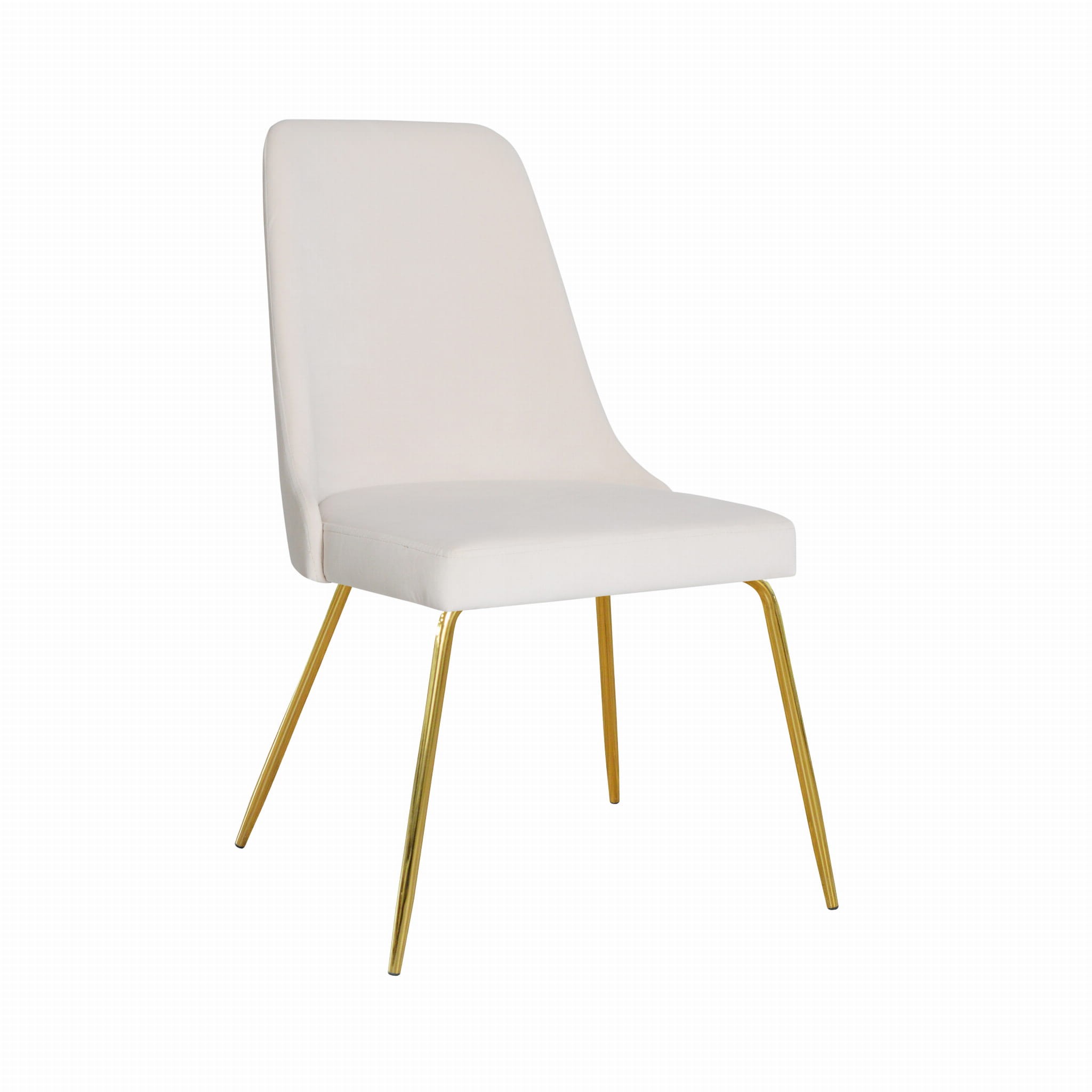 Proste, gładkie oparcie i siedzisko wyróżniają się niebanalnym kształtem i starannym wykonaniem. Mebel został wyposażony w gustowne, złote nogi, które dodają mu wyjątkowego uroku.